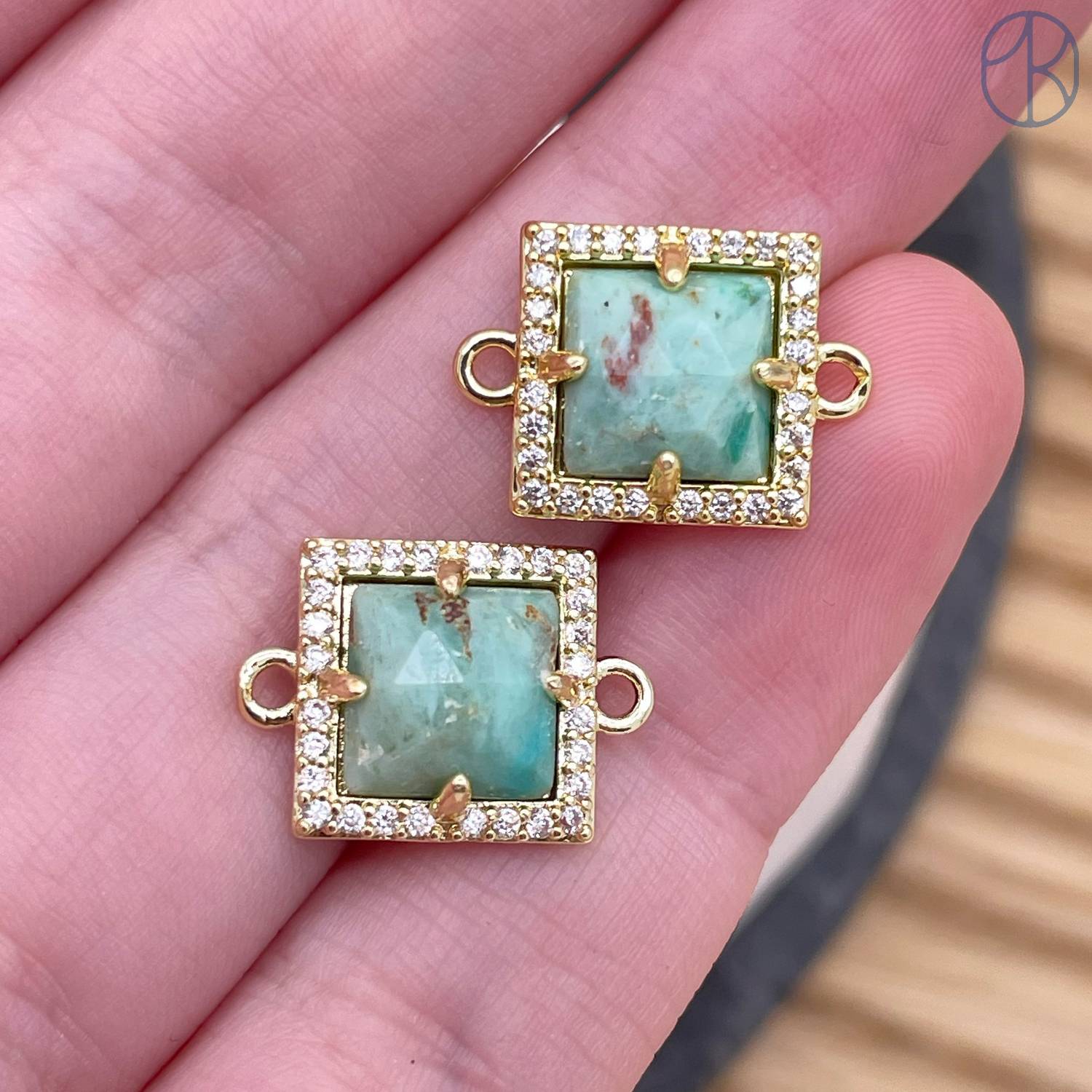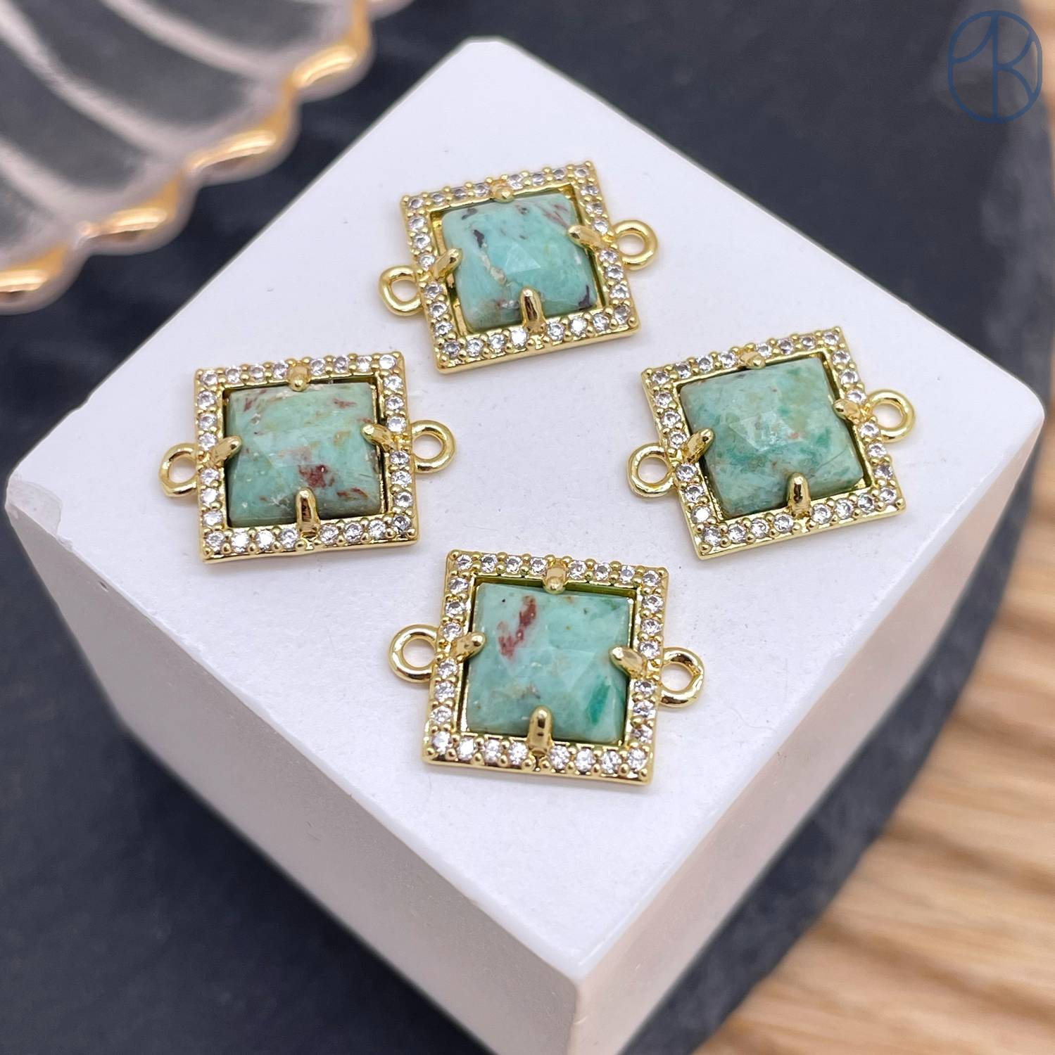 Коннектор квадрат огранка амазонит, цвет золото ~ 11 мм