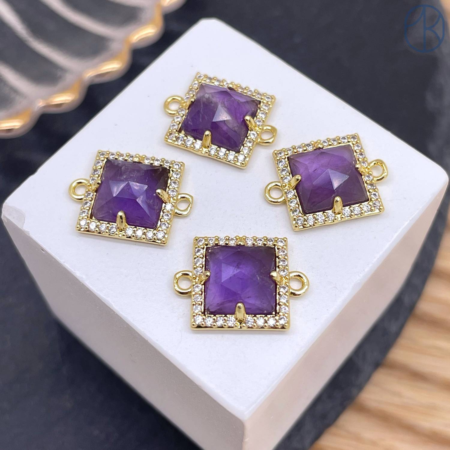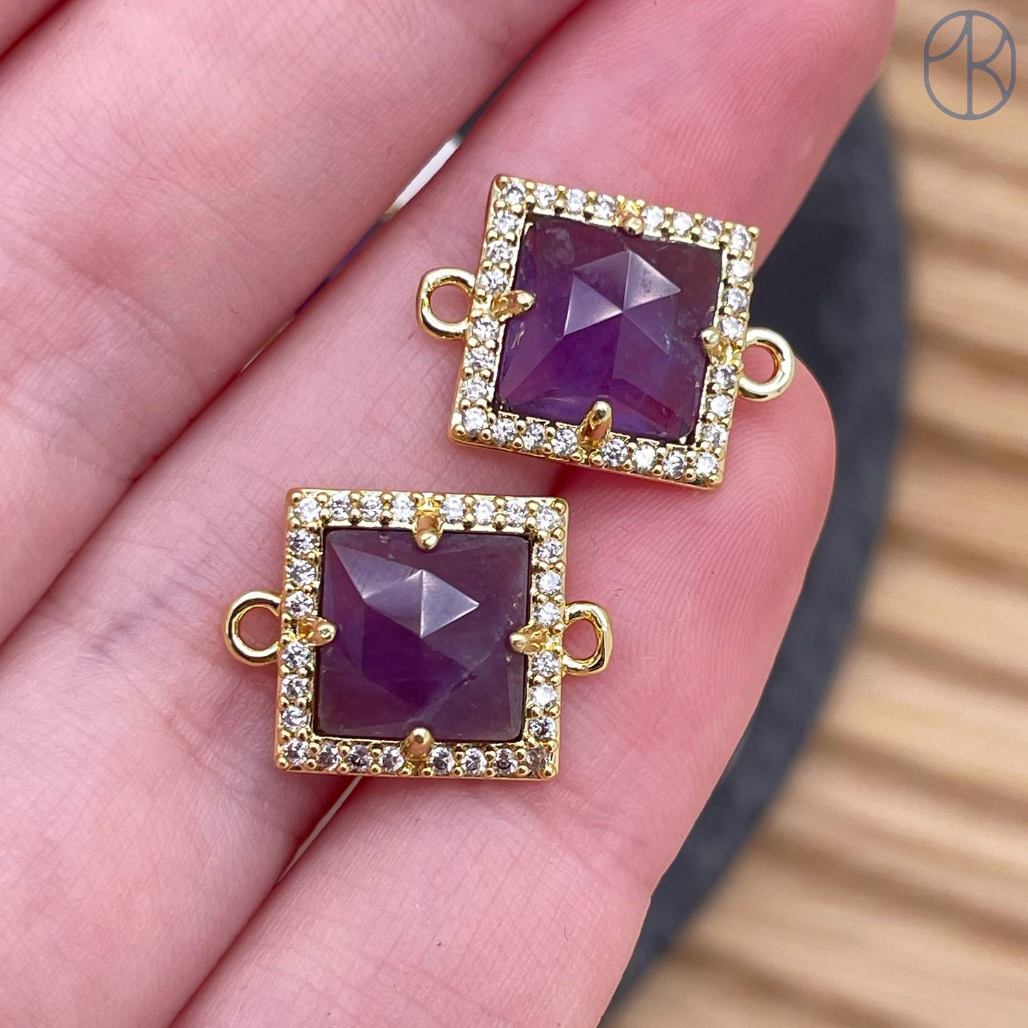 Коннектор квадрат огранка аметист, цвет золото ~ 11 мм