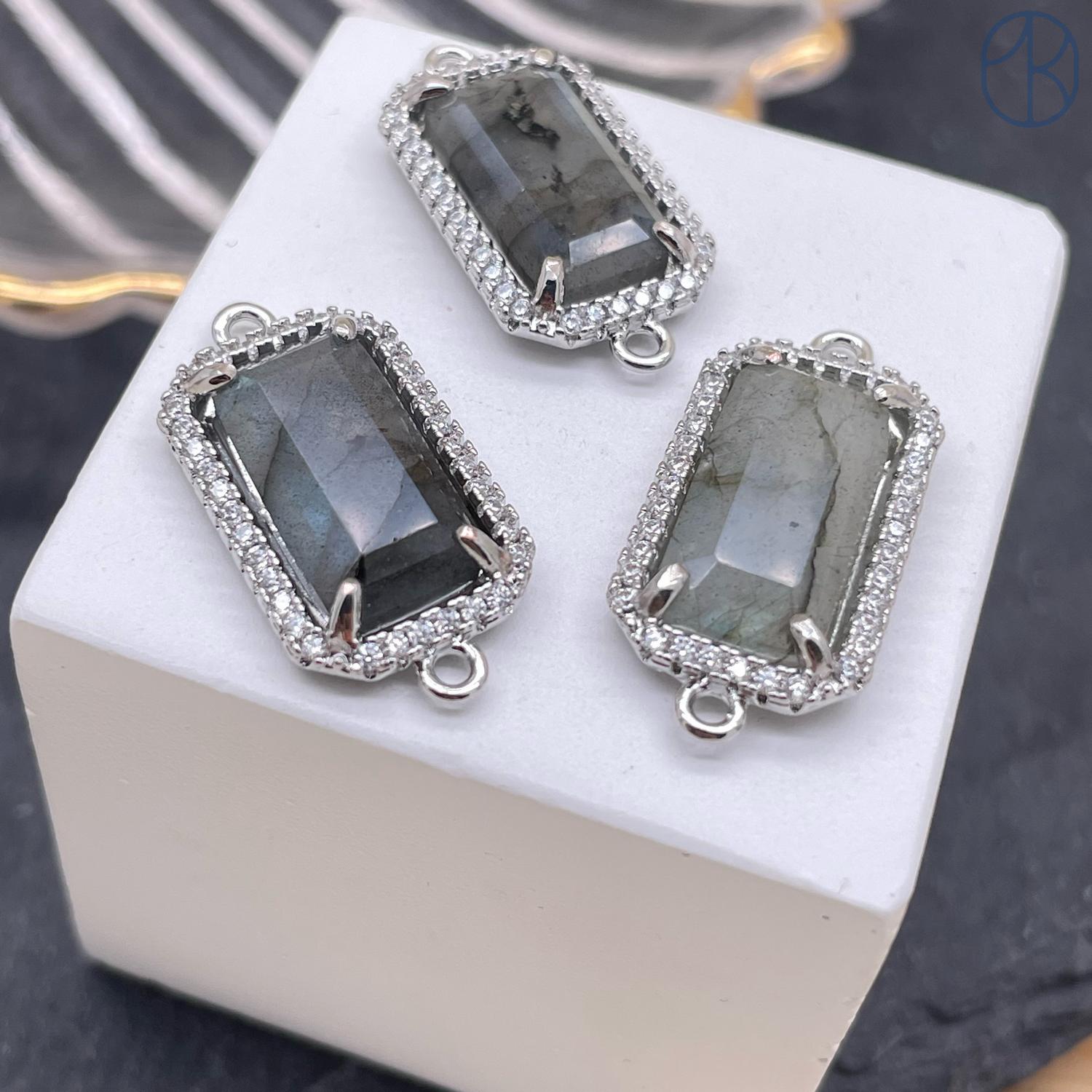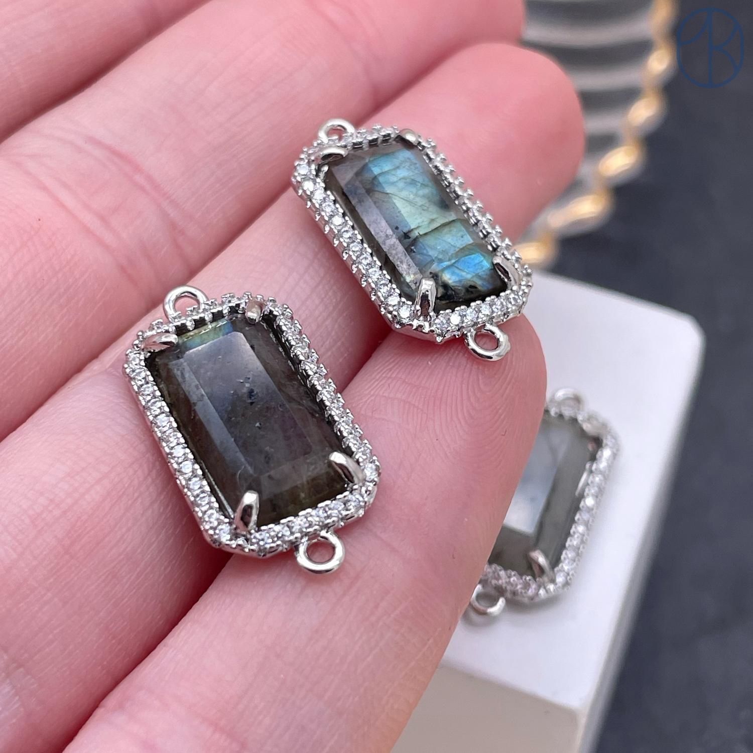Коннектор лабрадор прямоугольник цирконы, цвет серебро 18х12 мм