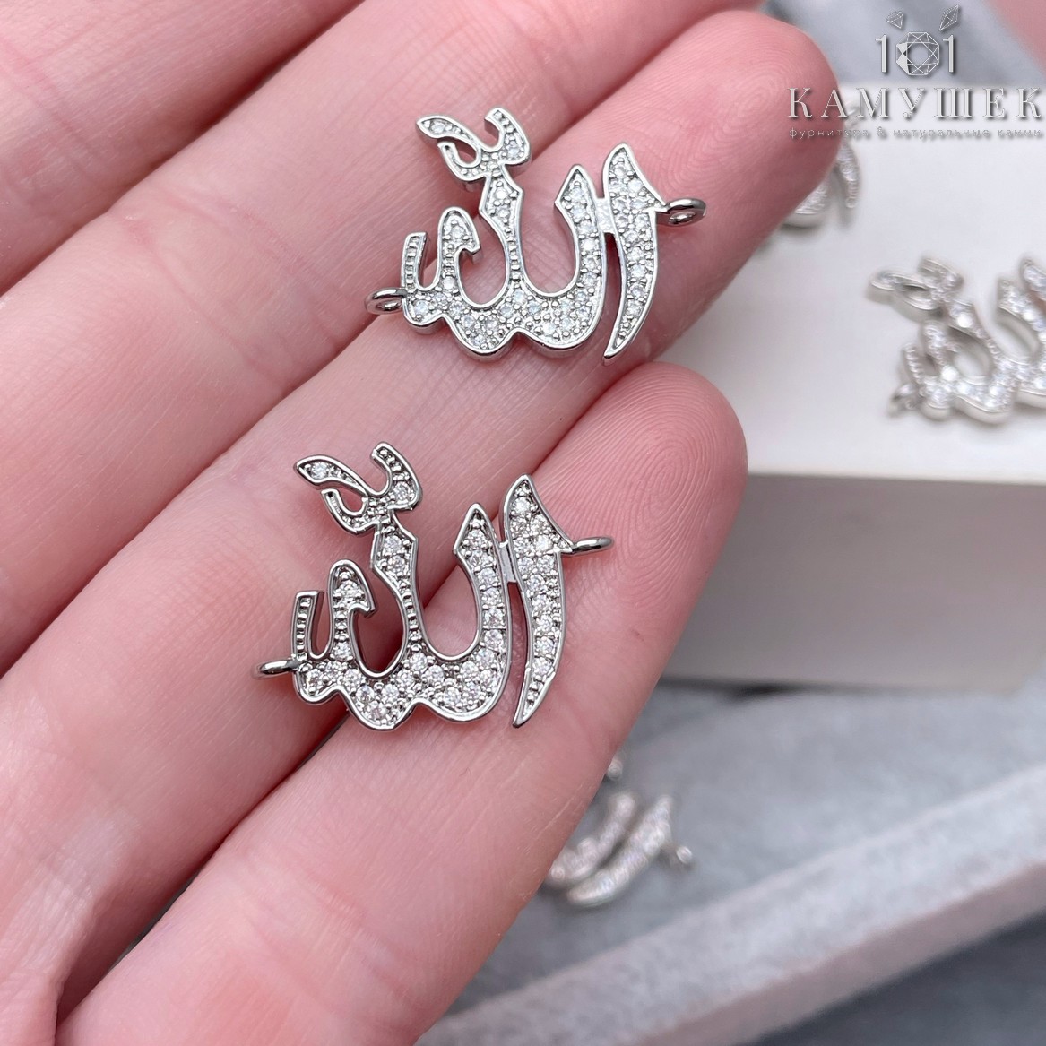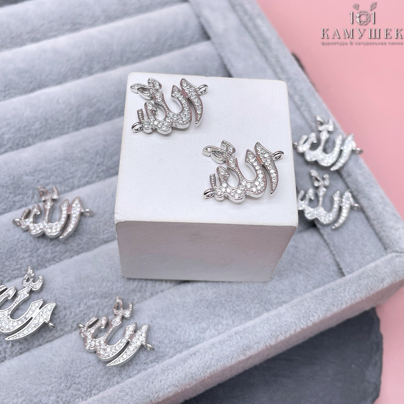 Коннектор мусульманский цирконы, цвет серебро 21х18 мм