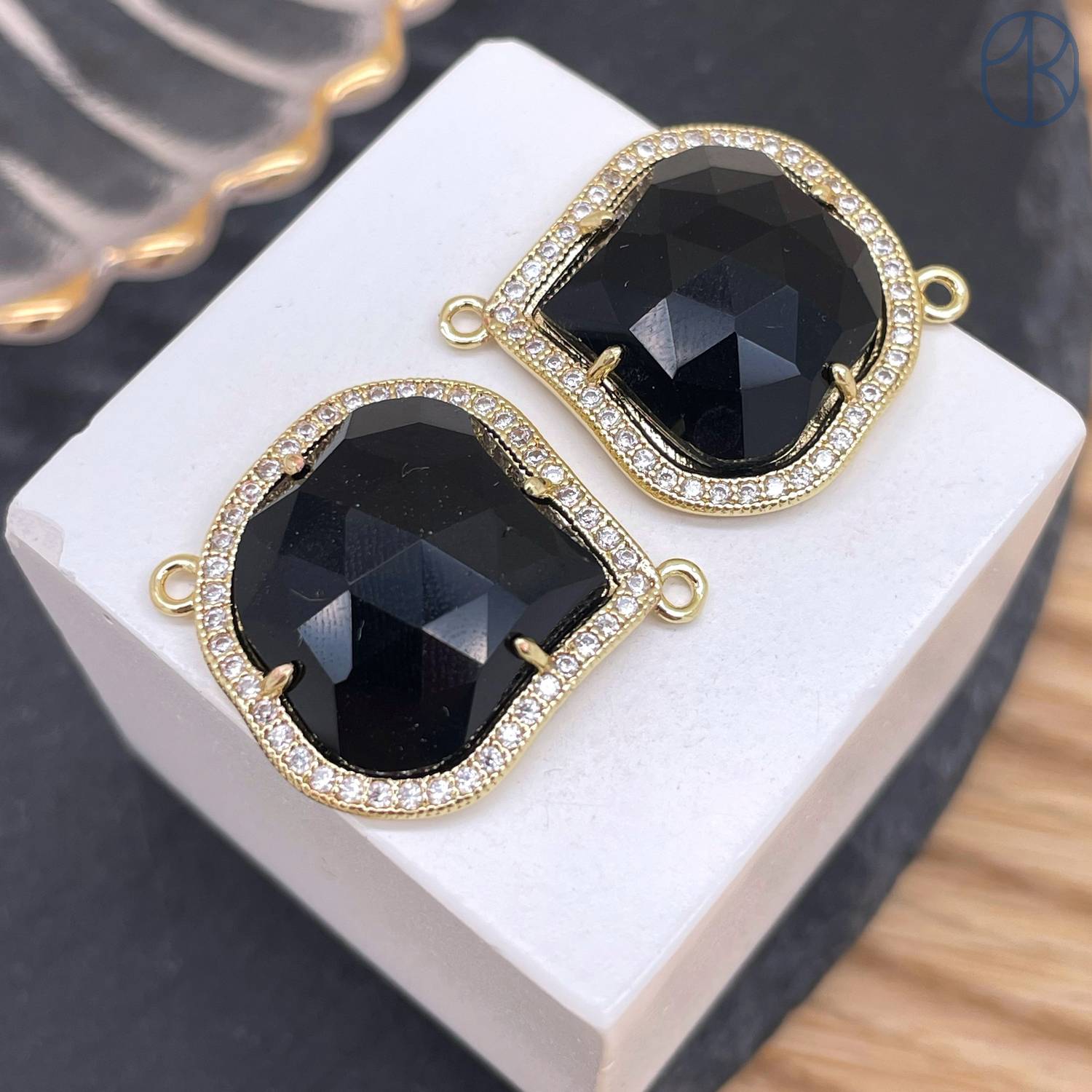 Коннектор огранка агат черный, цвет золото ~ 24 мм