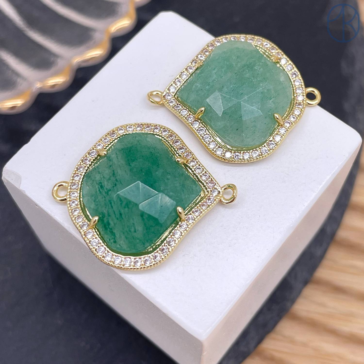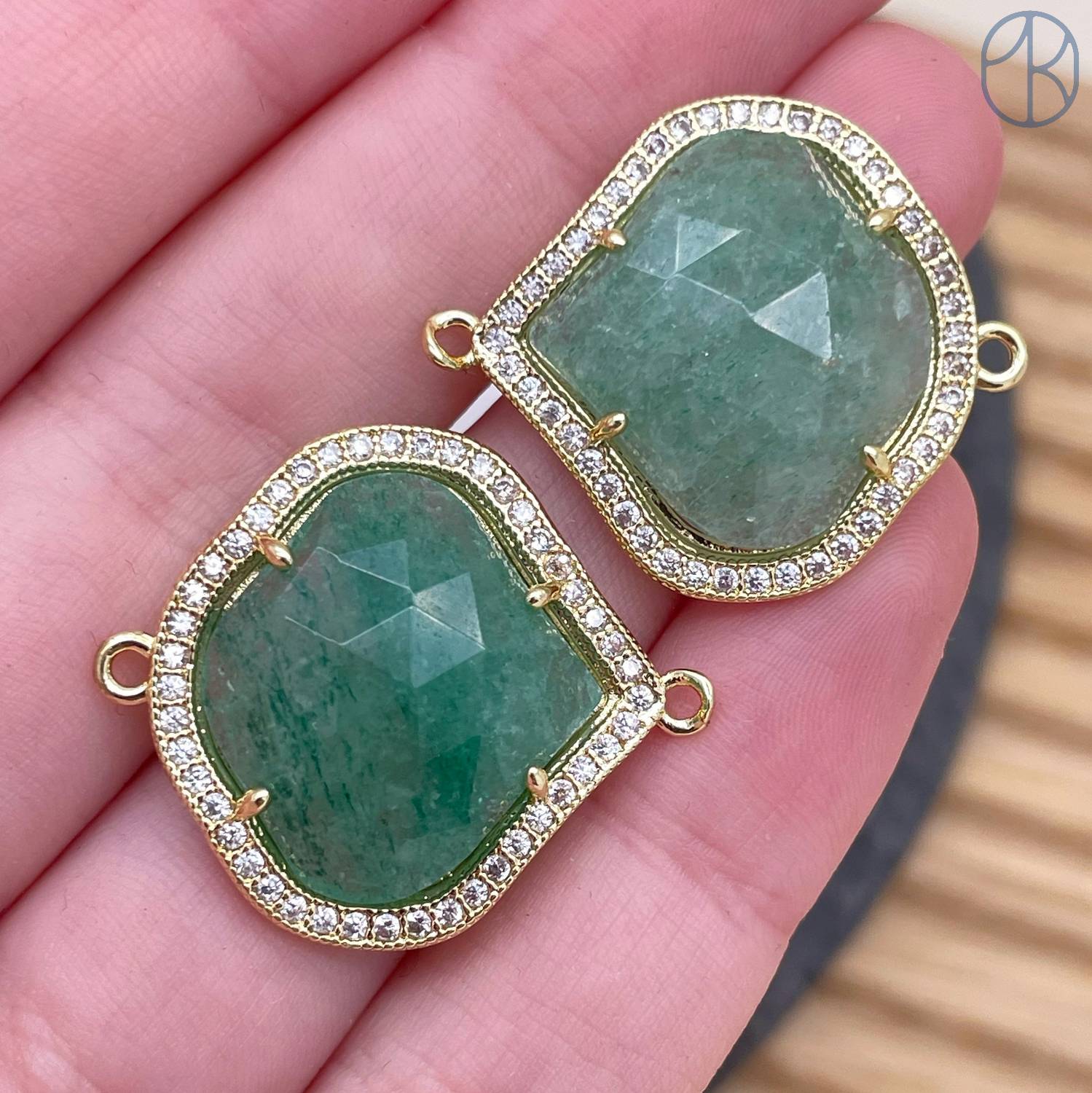 Коннектор огранка авантюрин зеленый, цвет золото ~ 24 мм