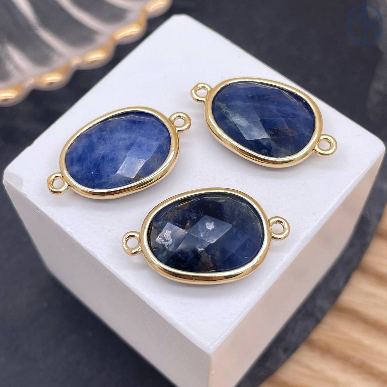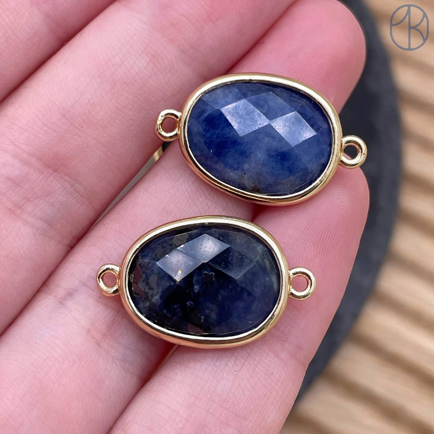 Коннектор овал огранка содалит, цвет золото ~ 16 мм