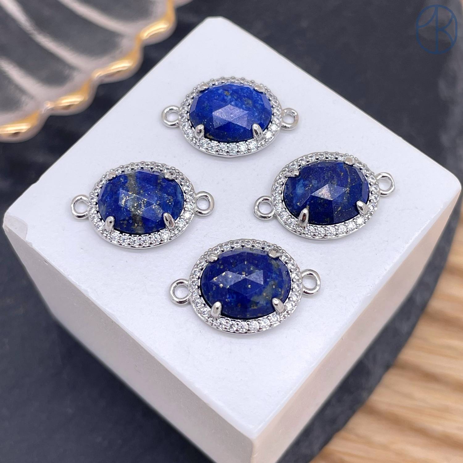 Коннектор овал огранка цирконы лазурит, цвет серебро ~ 12 мм