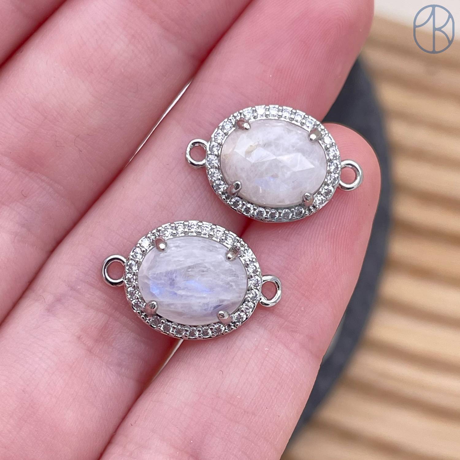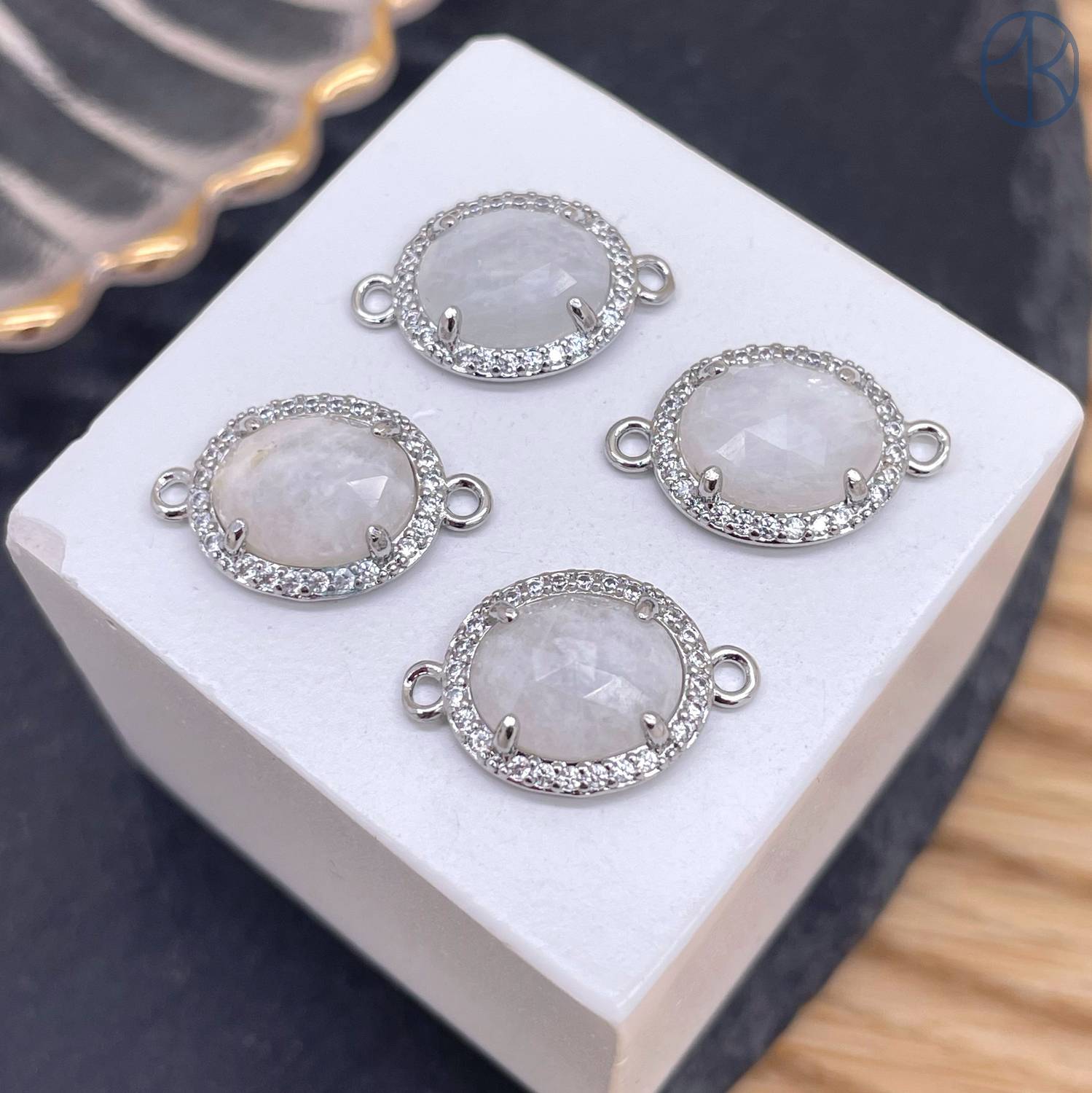 Коннектор овал огранка цирконы лунный камень, цвет серебро ~ 12 мм