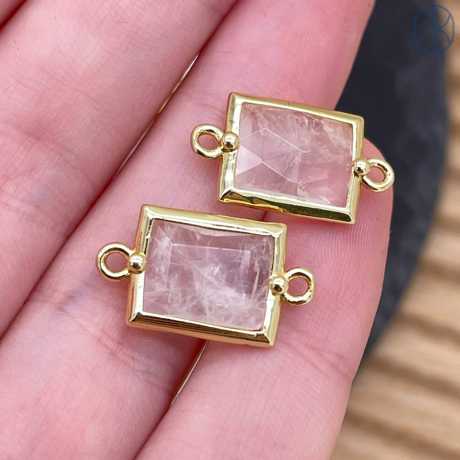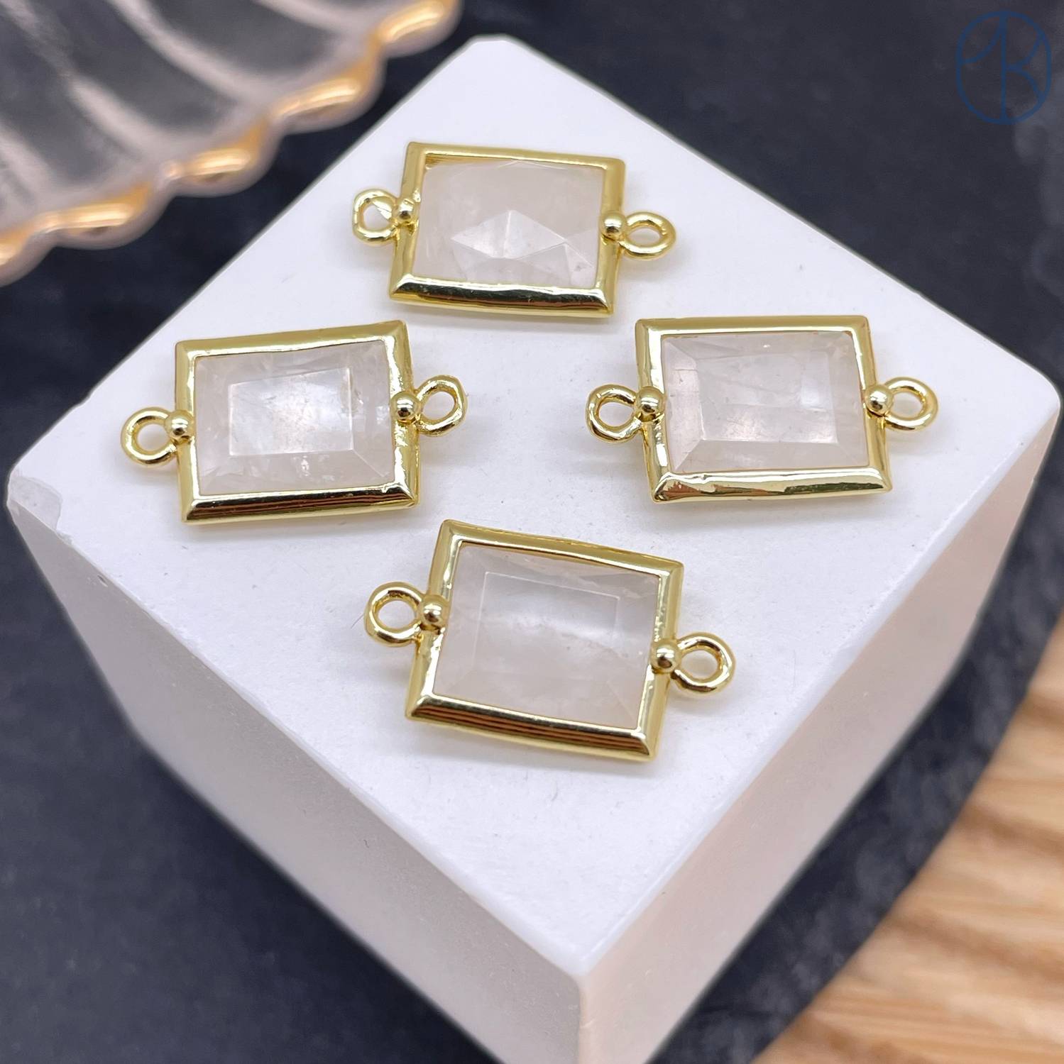 Коннектор прямоугольник огранка горный хрусталь, цвет золото ~ 12х10 мм
