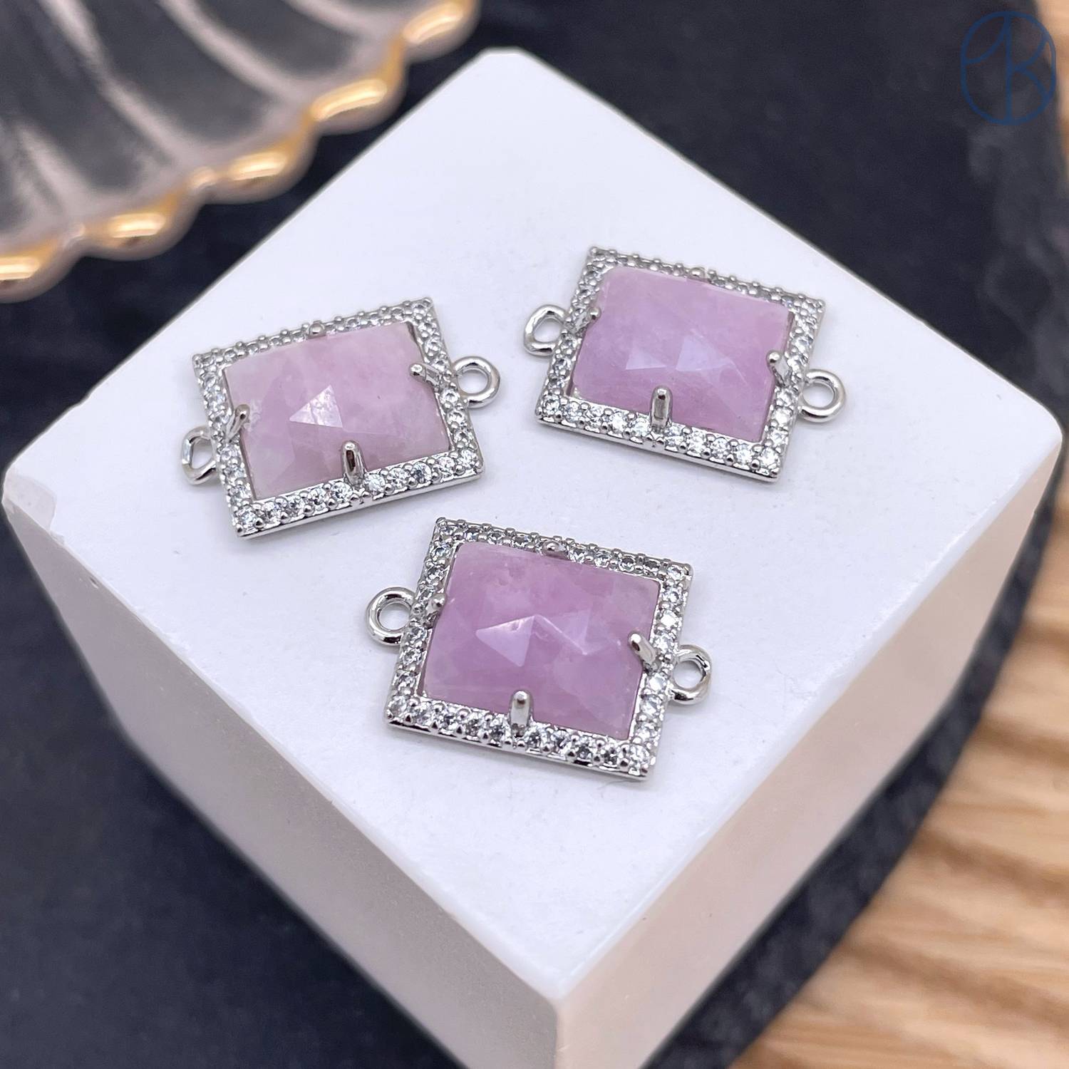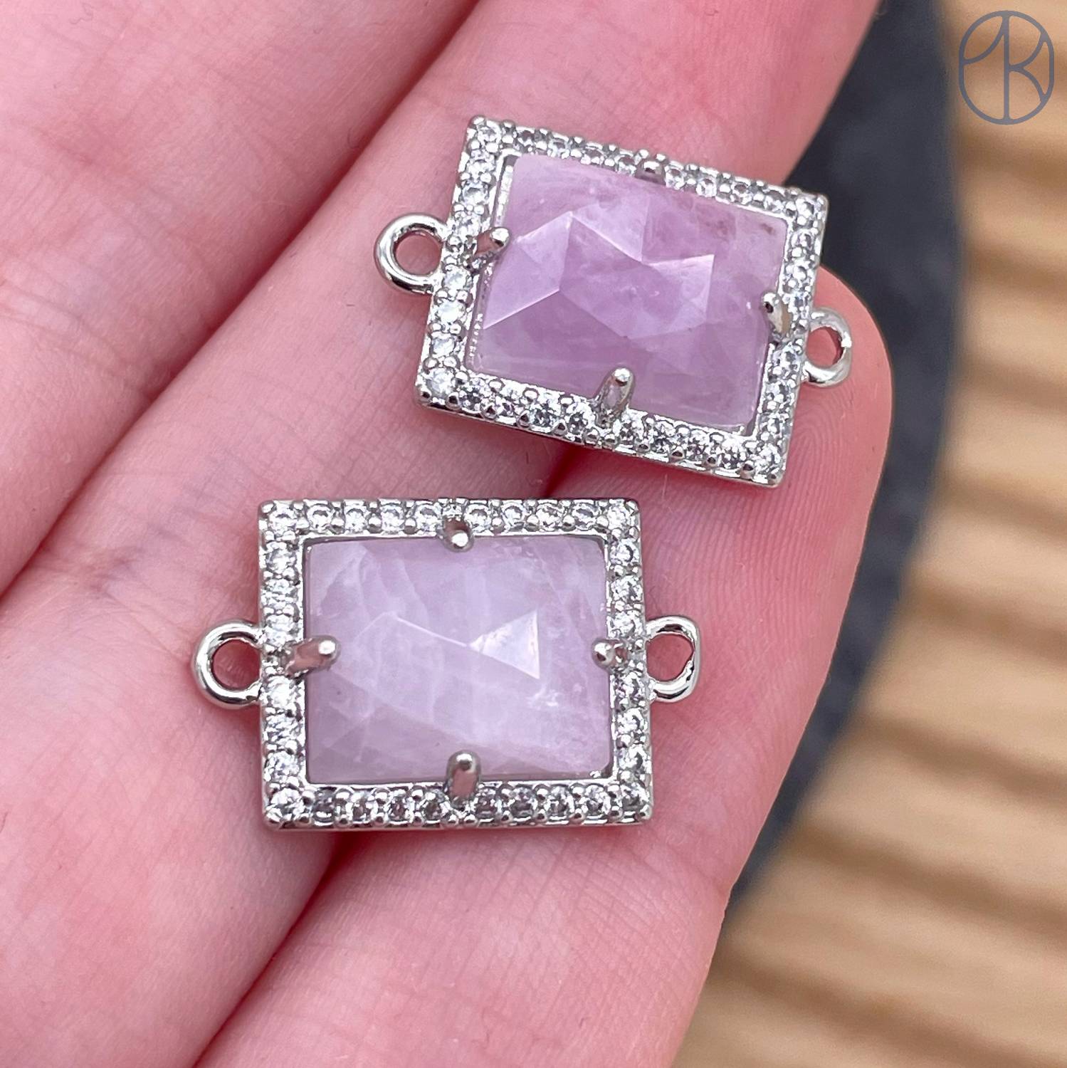 Коннектор прямоугольник огранка лавандовый аметист, цвет серебро ~ 13х11 мм