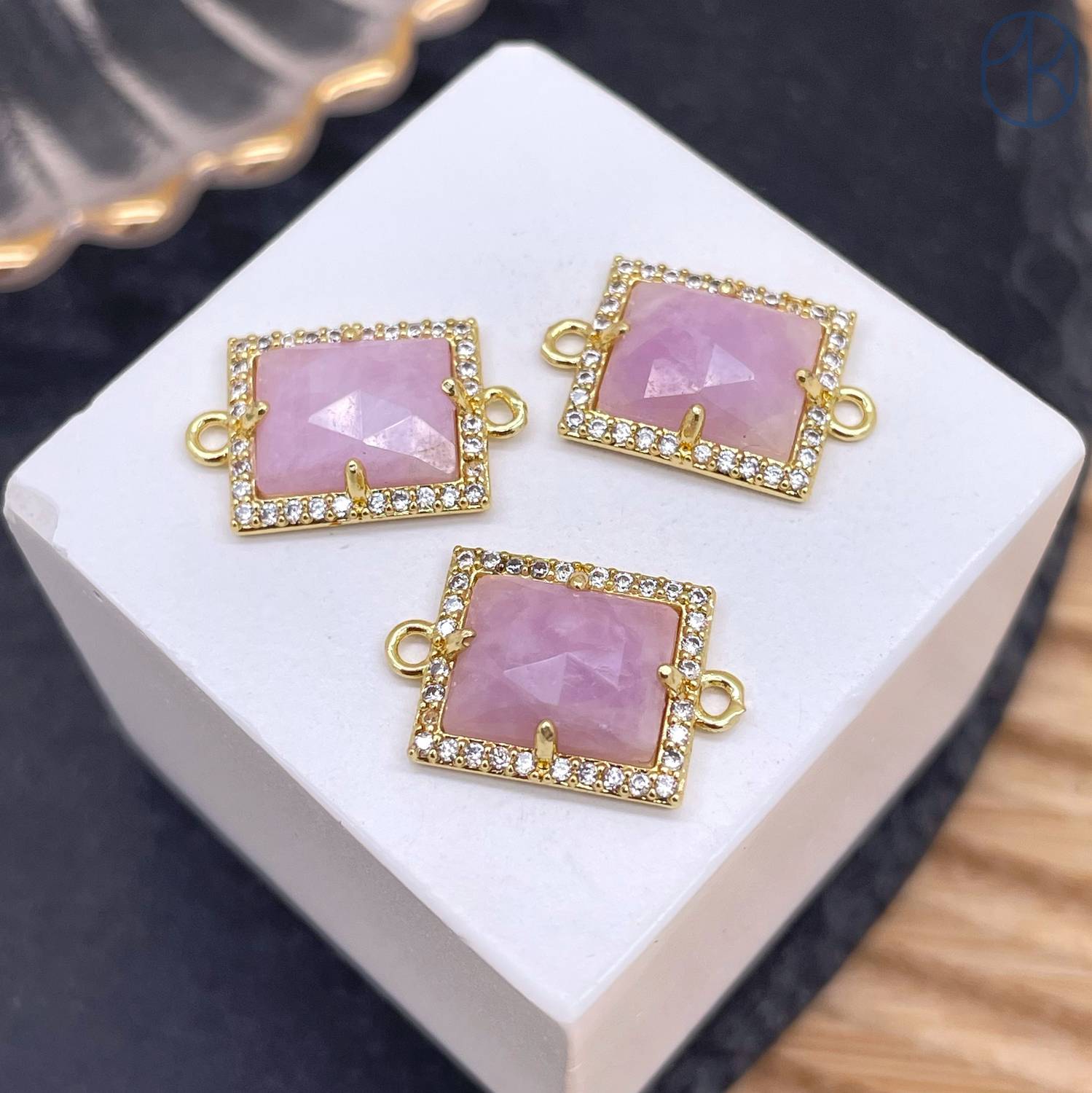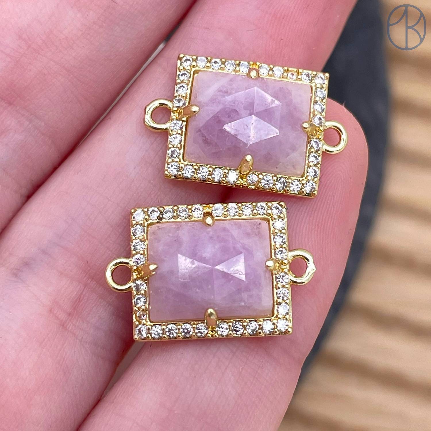 Коннектор прямоугольник огранка лавандовый аметист, цвет золото ~ 13х11 мм