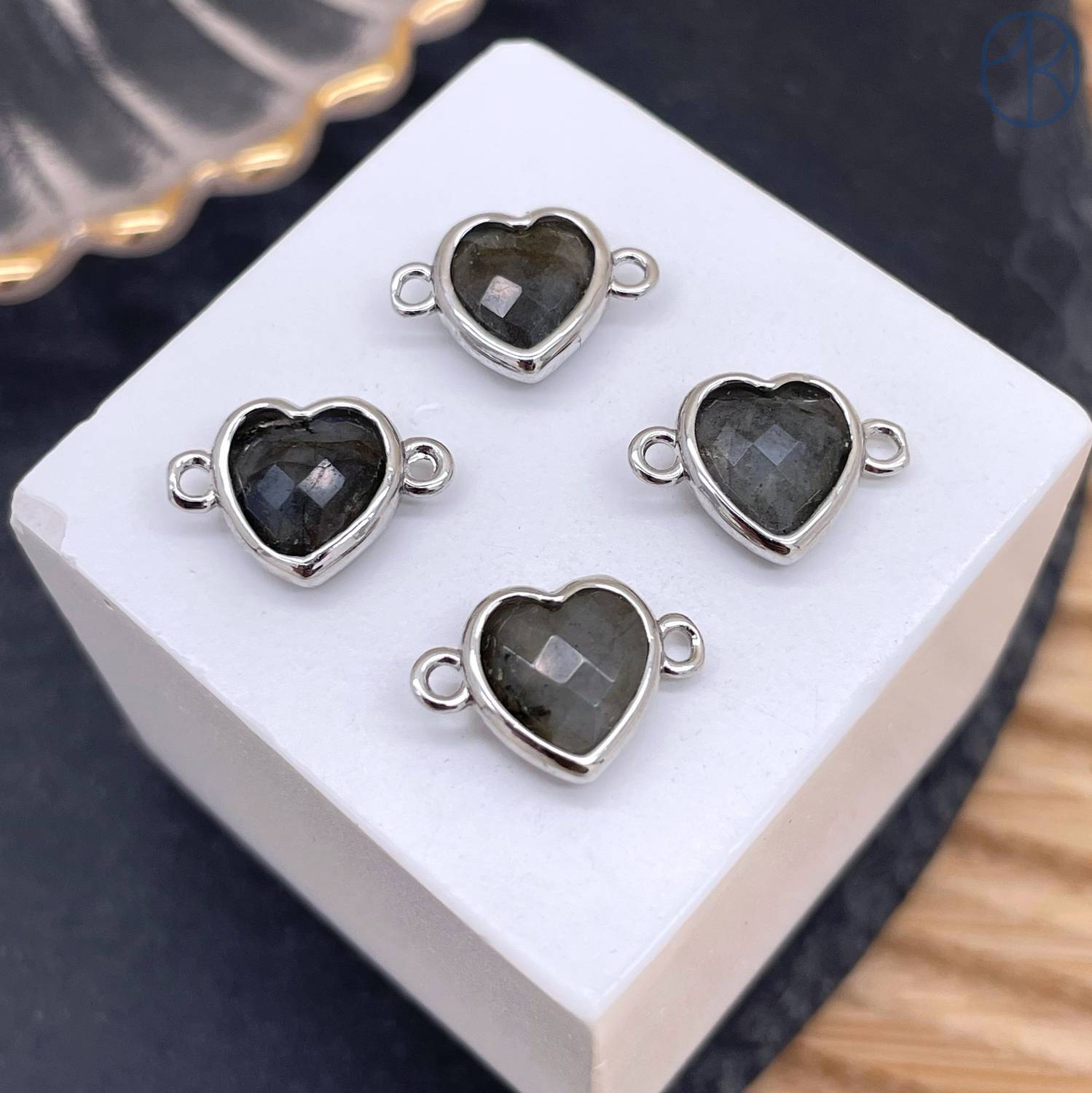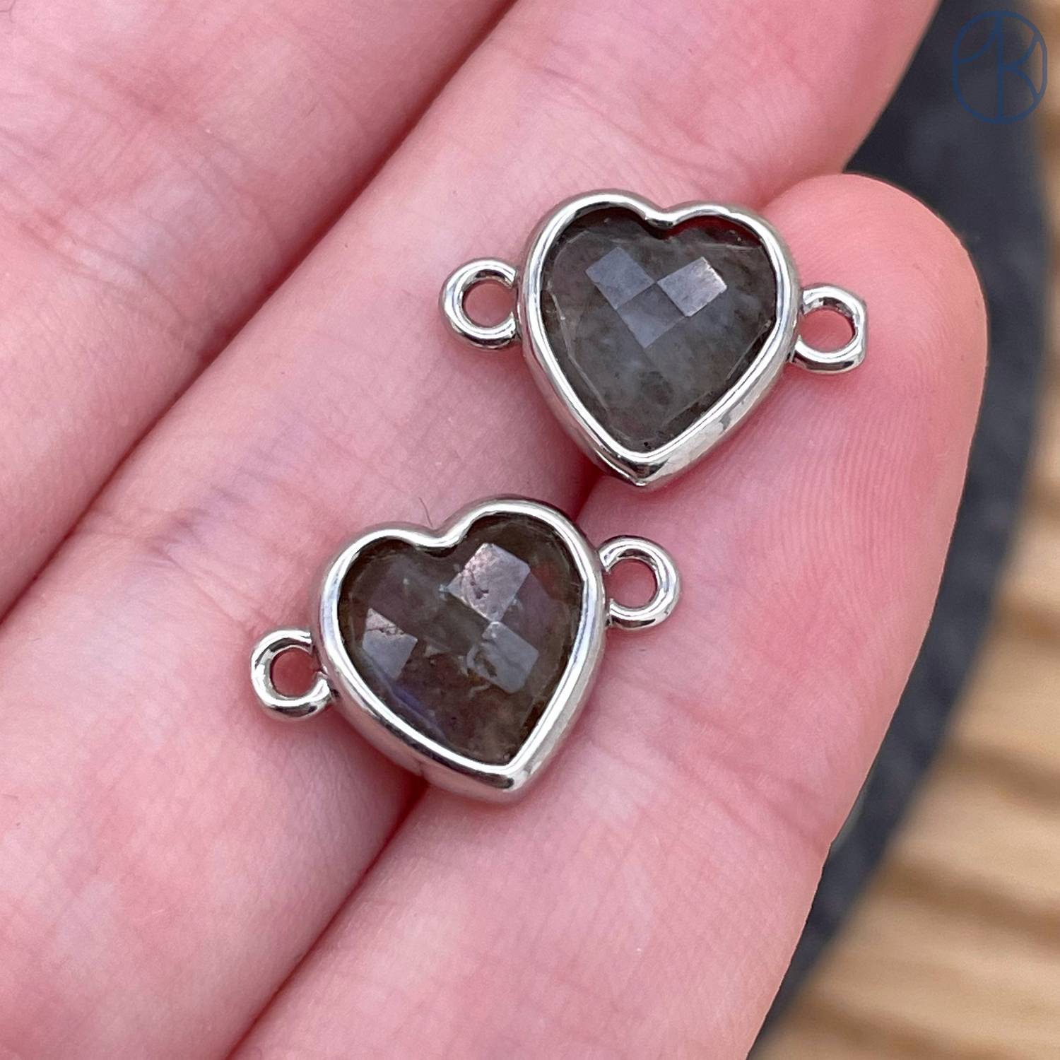 Коннектор сердце огранка лабрадор, цвет серебро ~ 11 мм