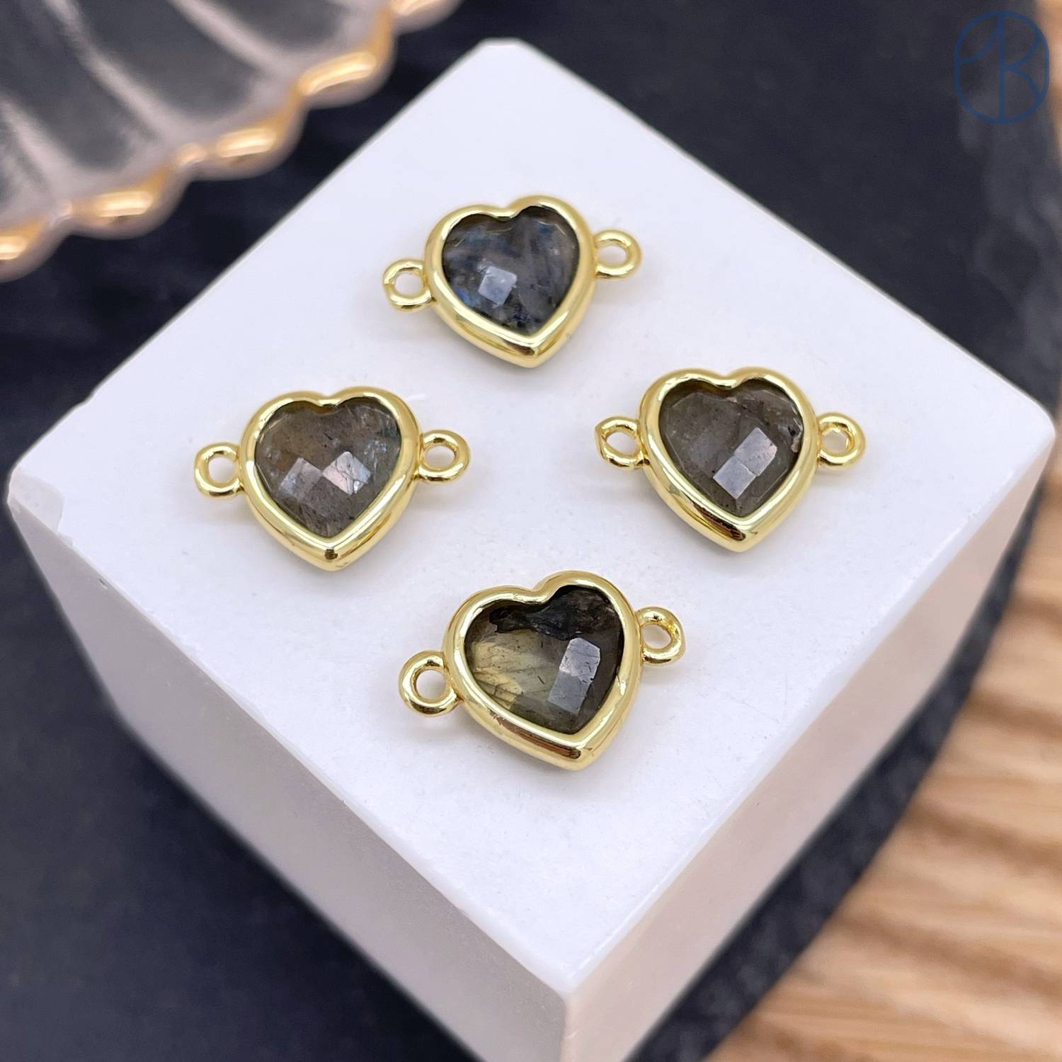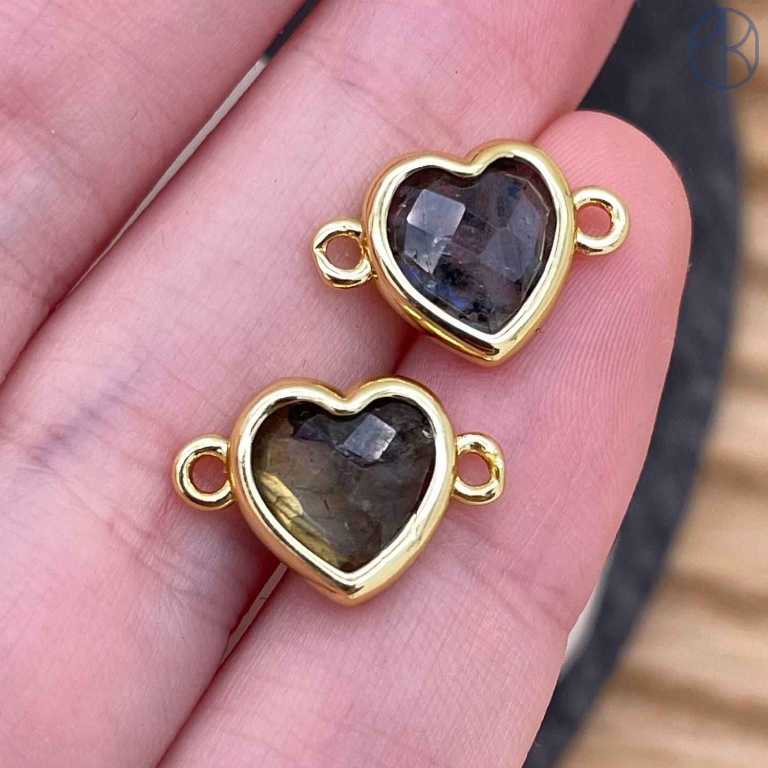 Коннектор сердце огранка лабрадор, цвет золото ~ 11 мм