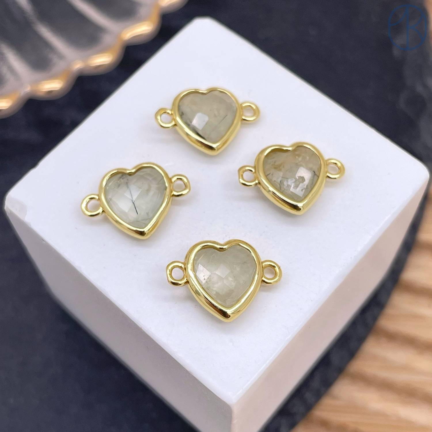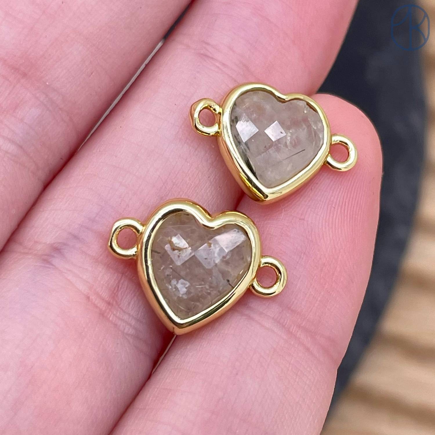 Коннектор сердце огранка пренит, цвет золото ~ 11 мм