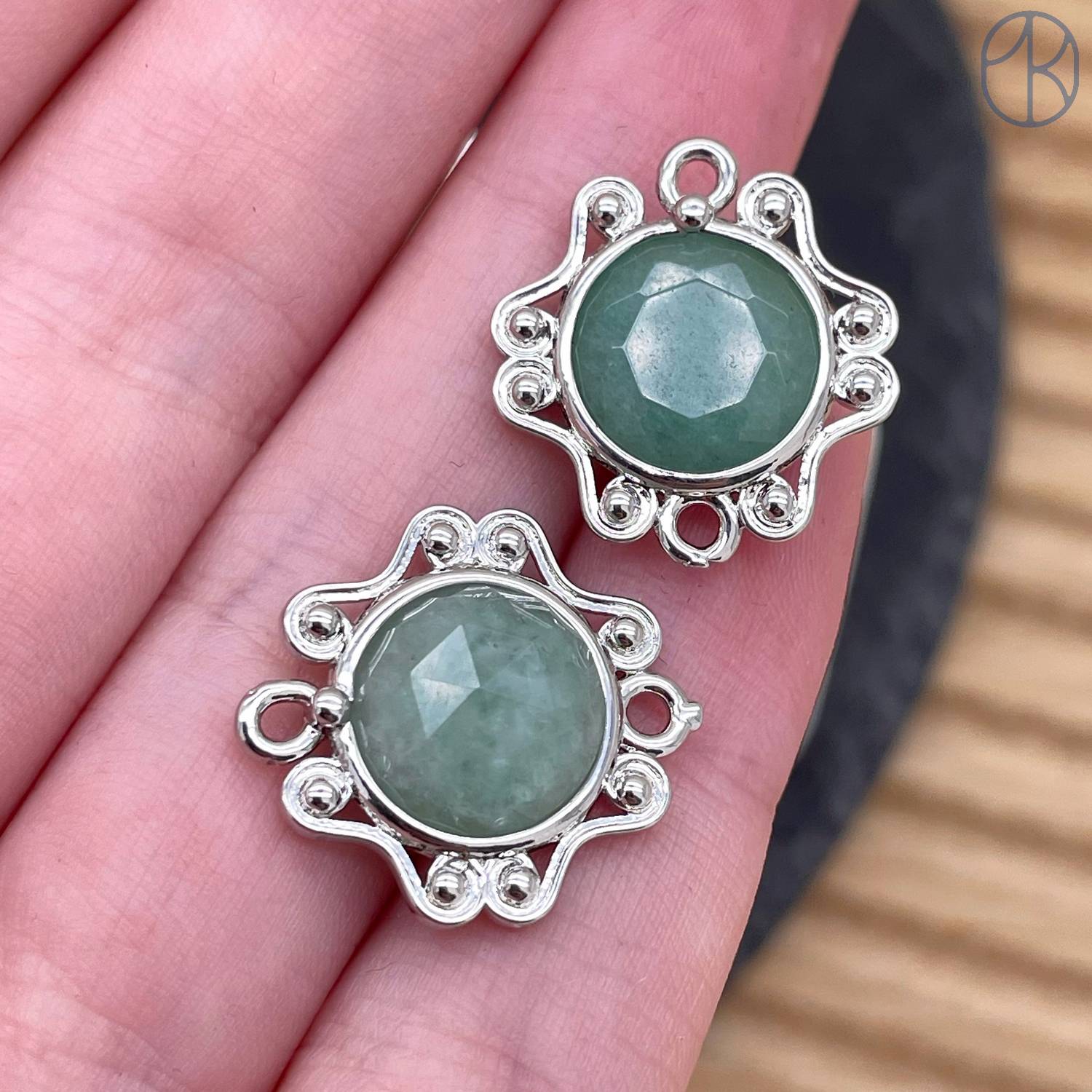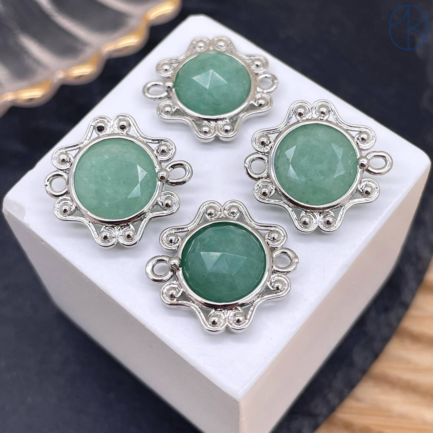 Коннектор солнце огранка авантюрин зеленый, цвет серебро ~ 16 мм