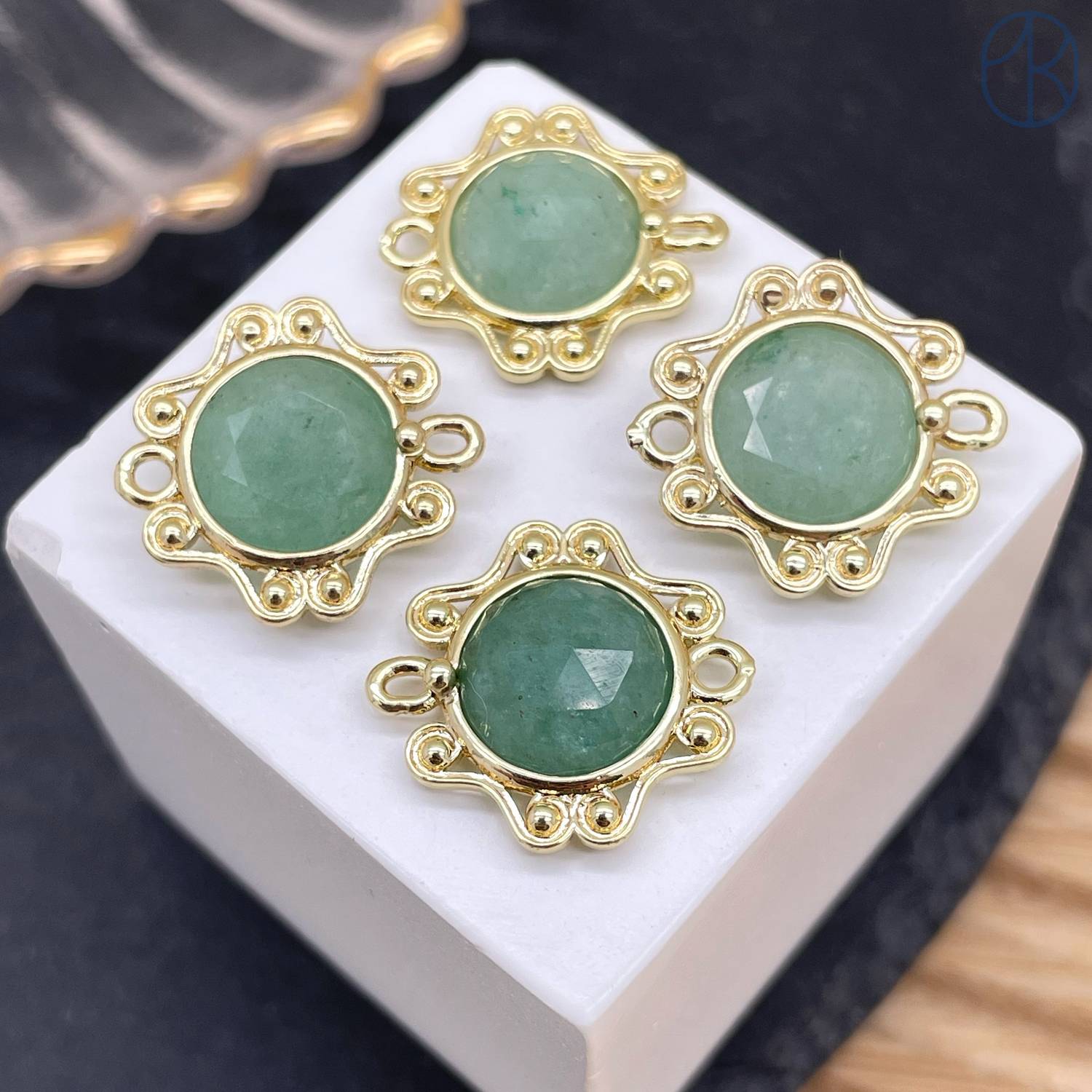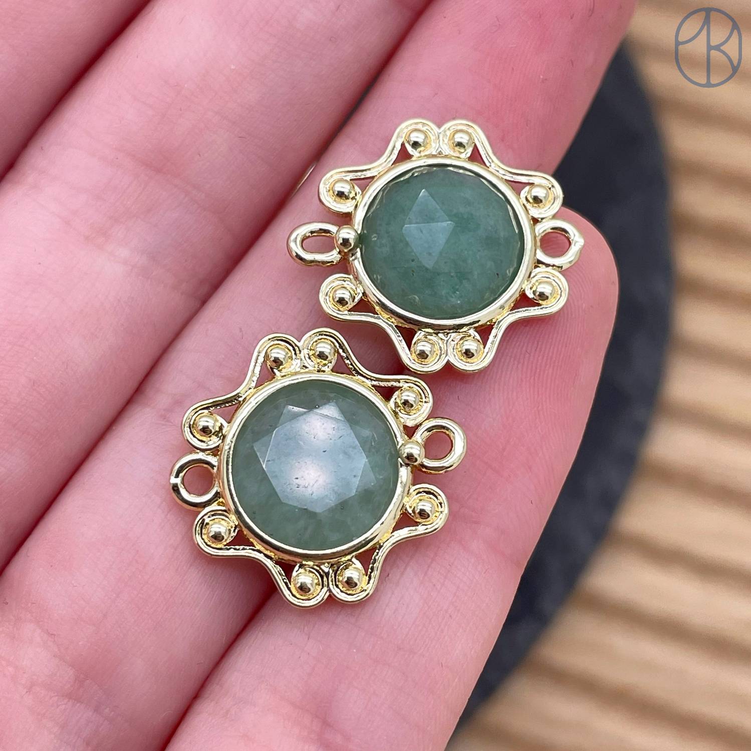 Коннектор солнце огранка авантюрин зеленый, цвет золото ~ 16 мм