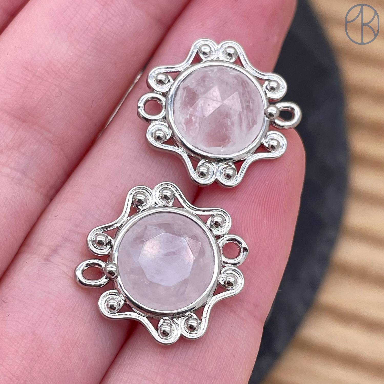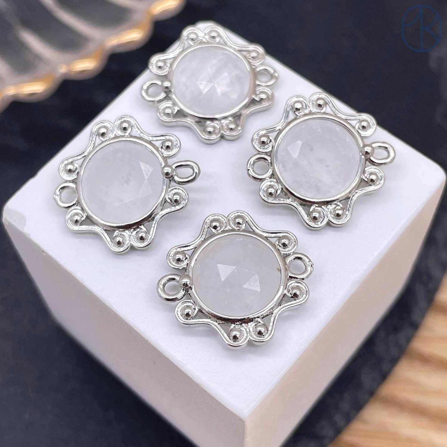 Коннектор солнце огранка горный хрусталь, цвет серебро ~ 16 мм