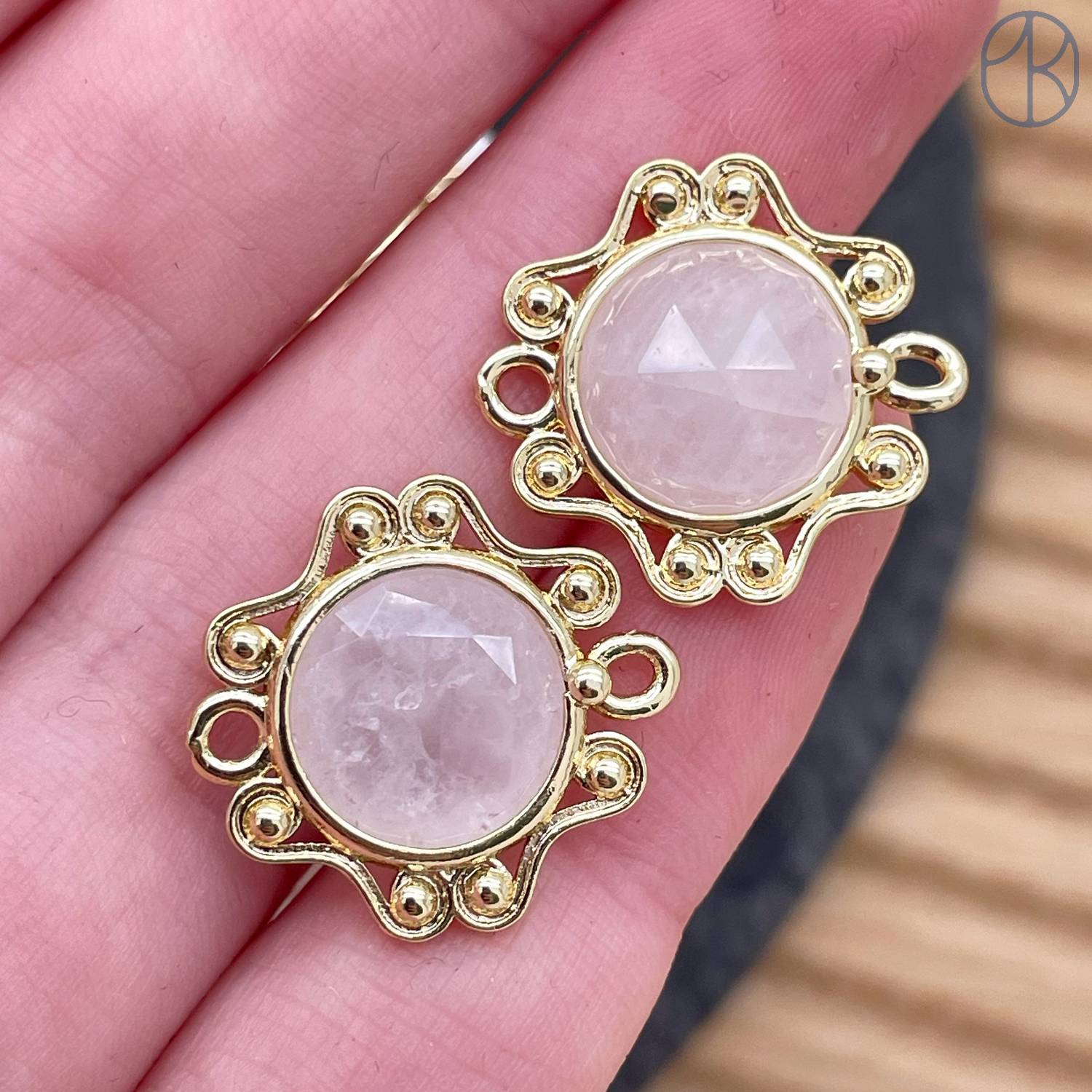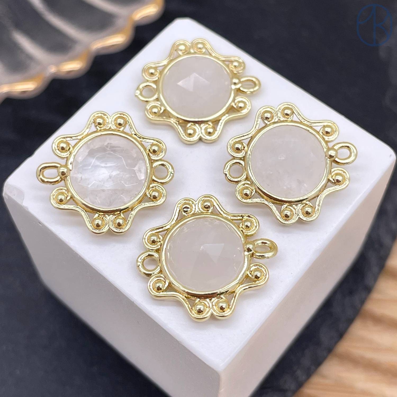 Коннектор солнце огранка горный хрусталь, цвет золото ~ 16 мм