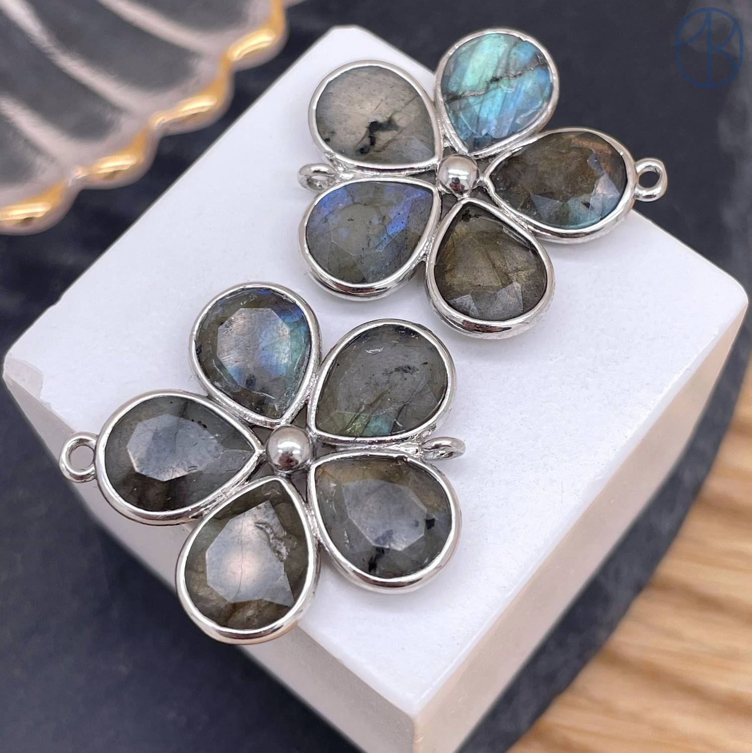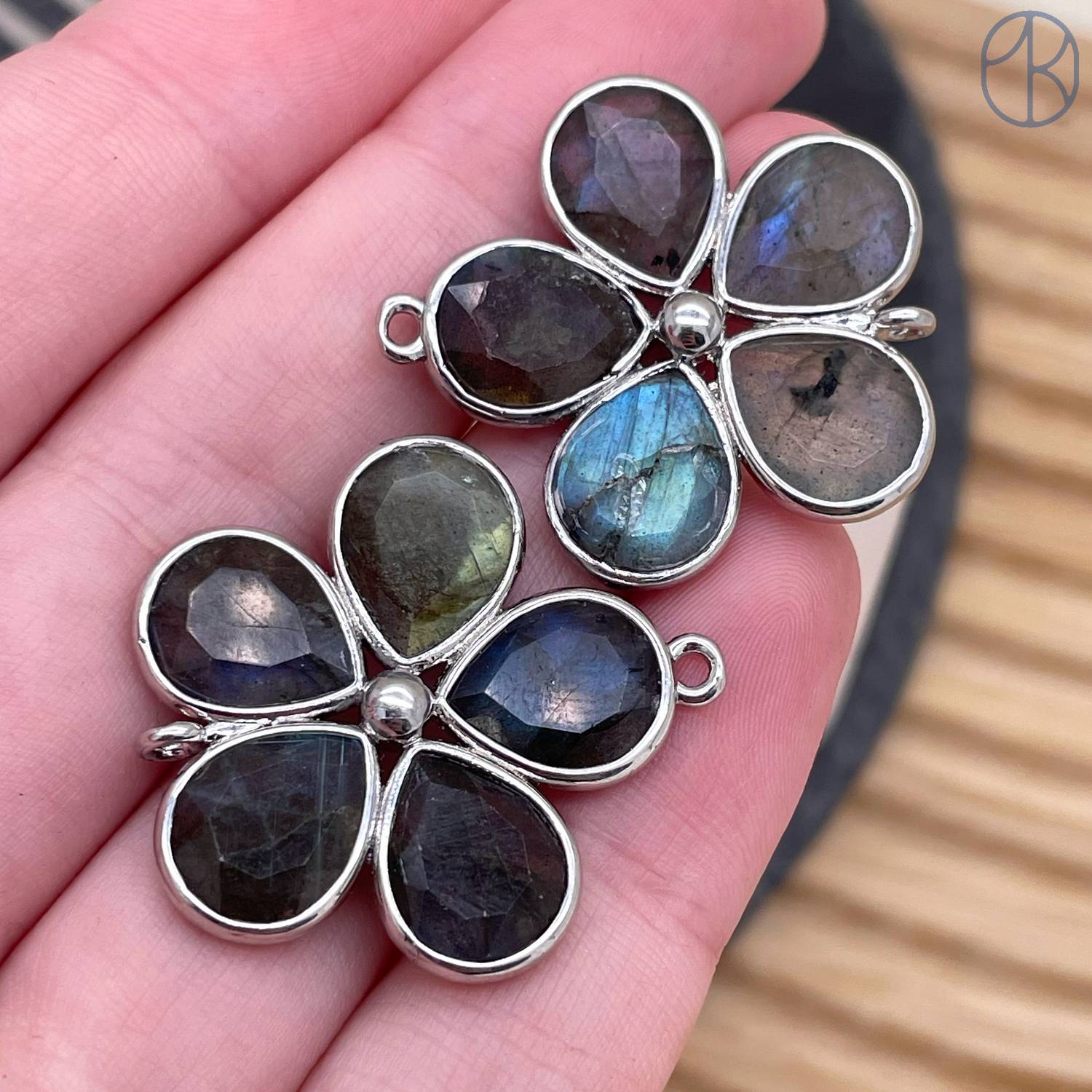 Коннектор цветок огранка лабрадор, цвет серебро ~ 26 мм