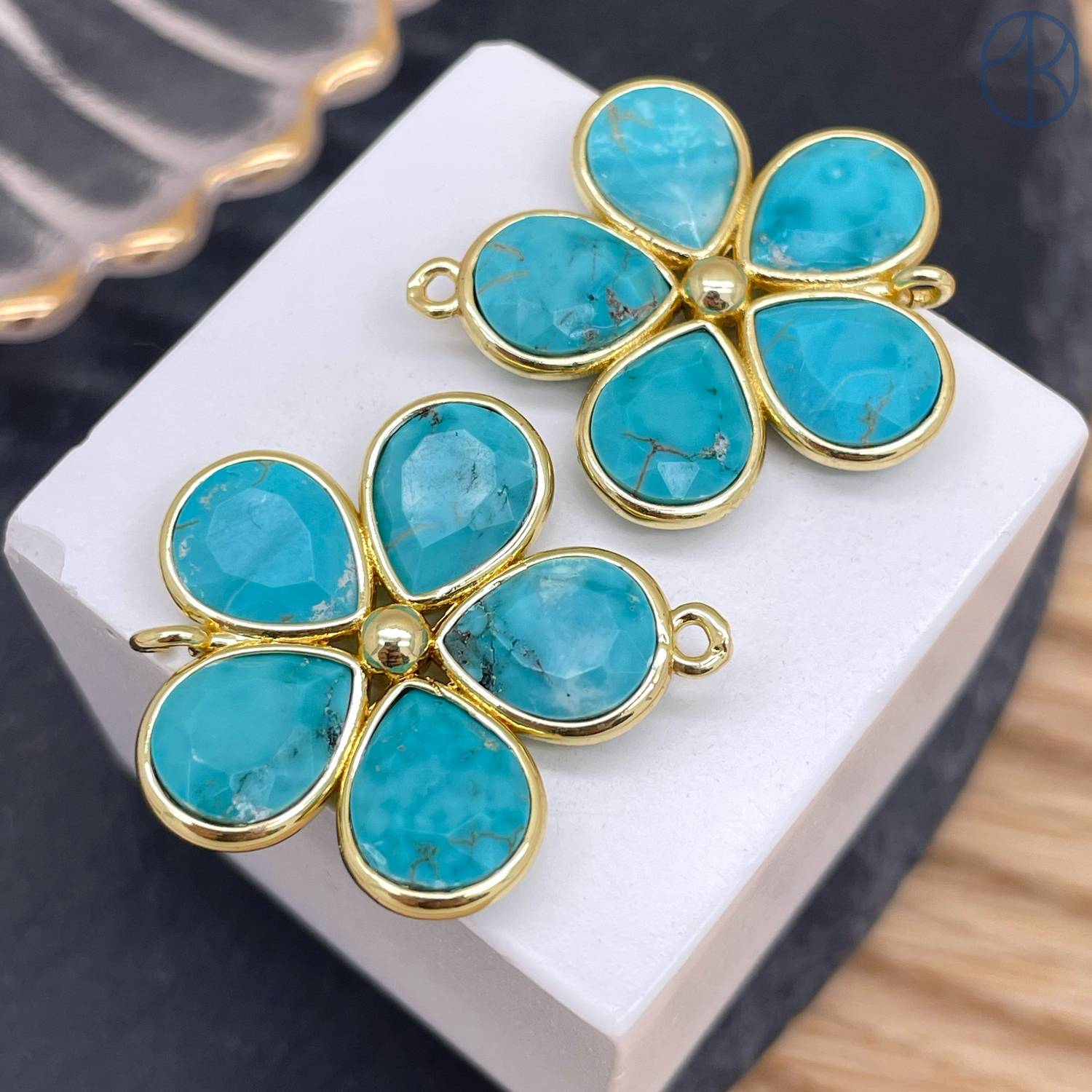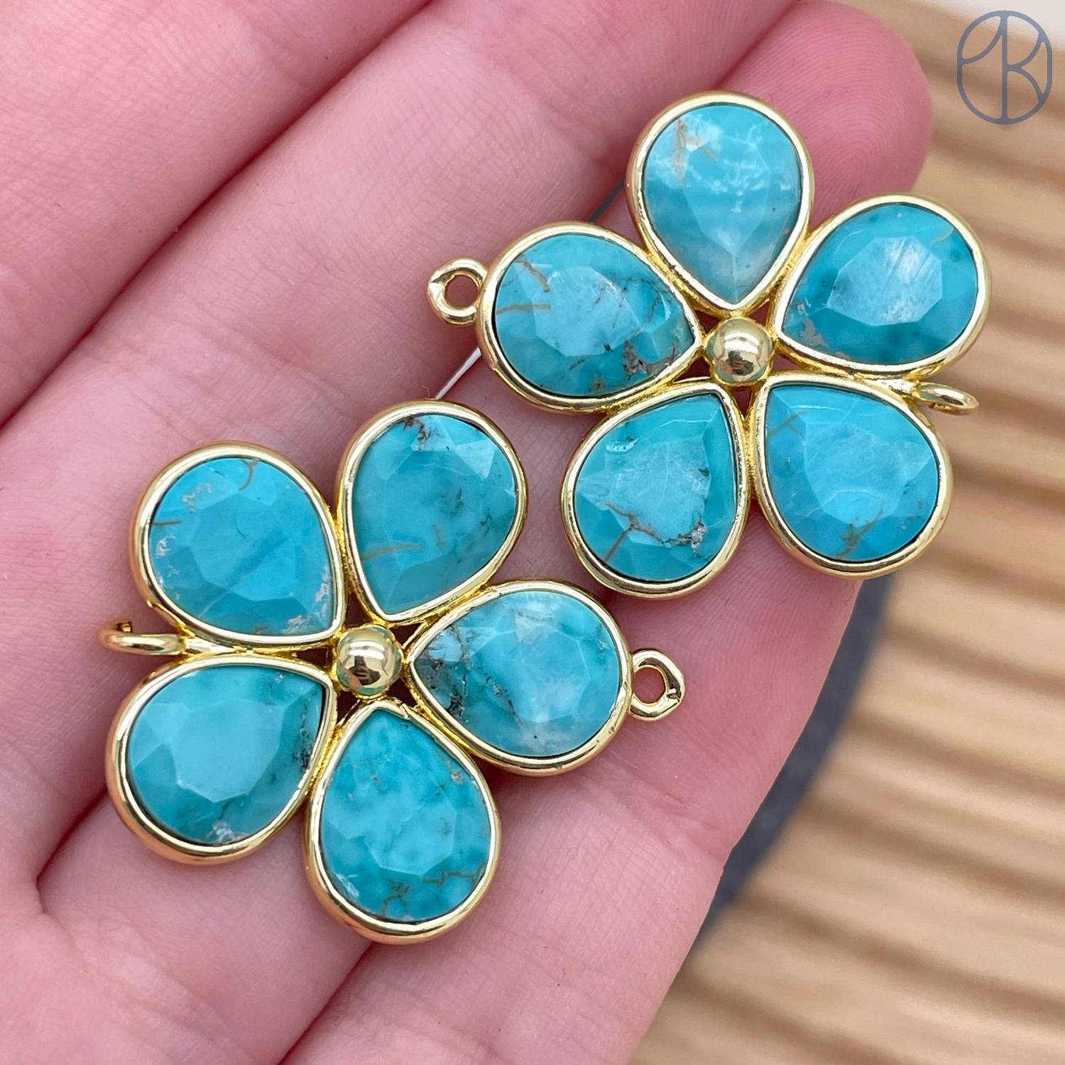 Коннектор цветок огранка турквенит, цвет золото ~ 26 мм