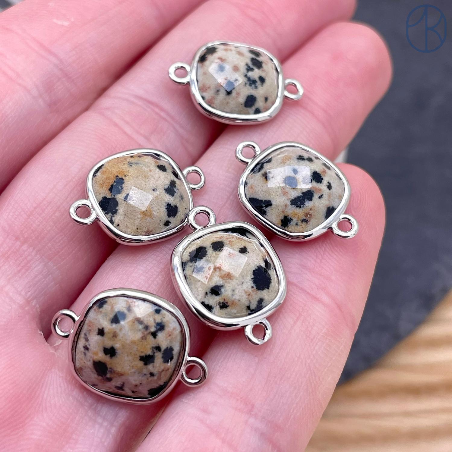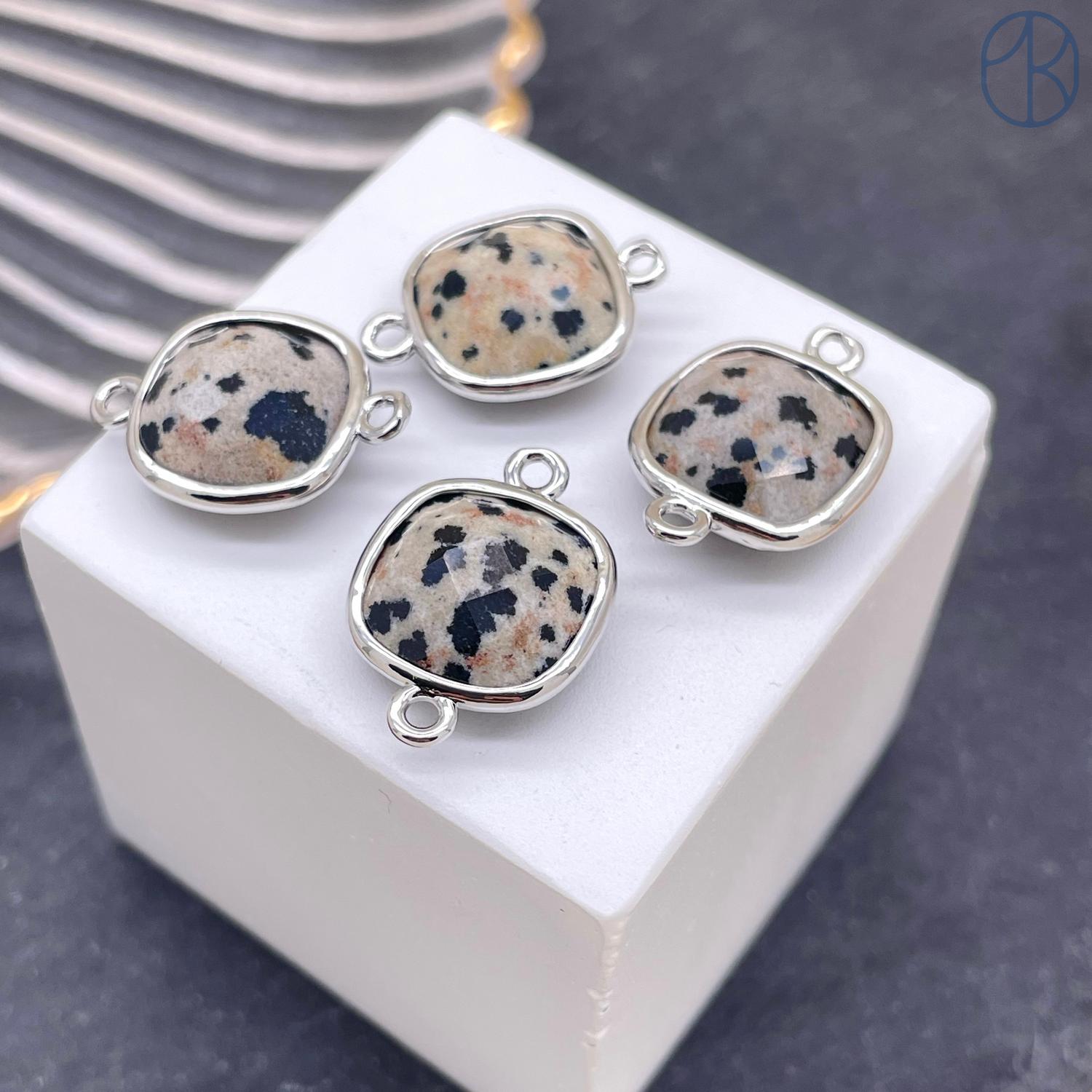 Коннектор Яшма далматиновая, цвет серебро 12 мм