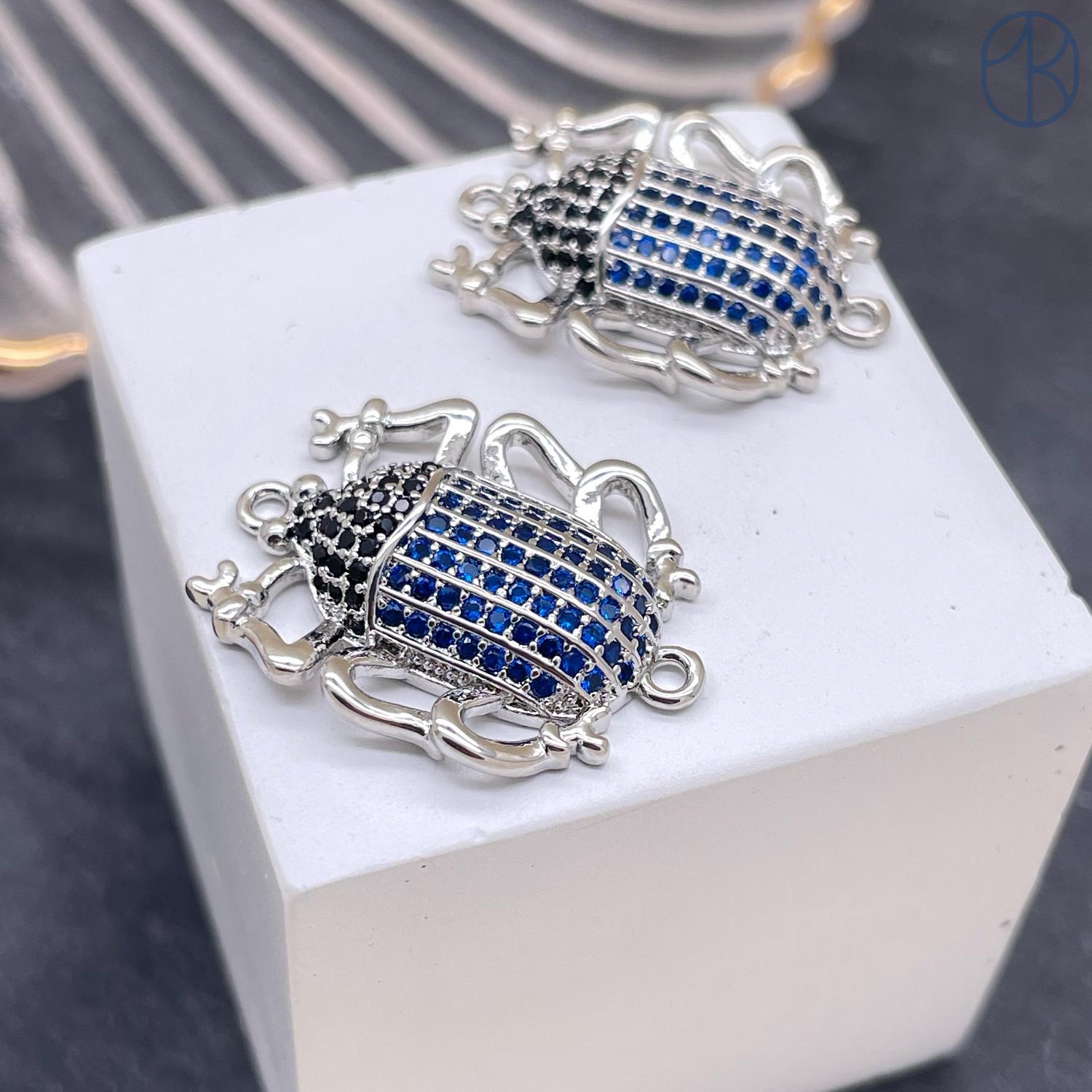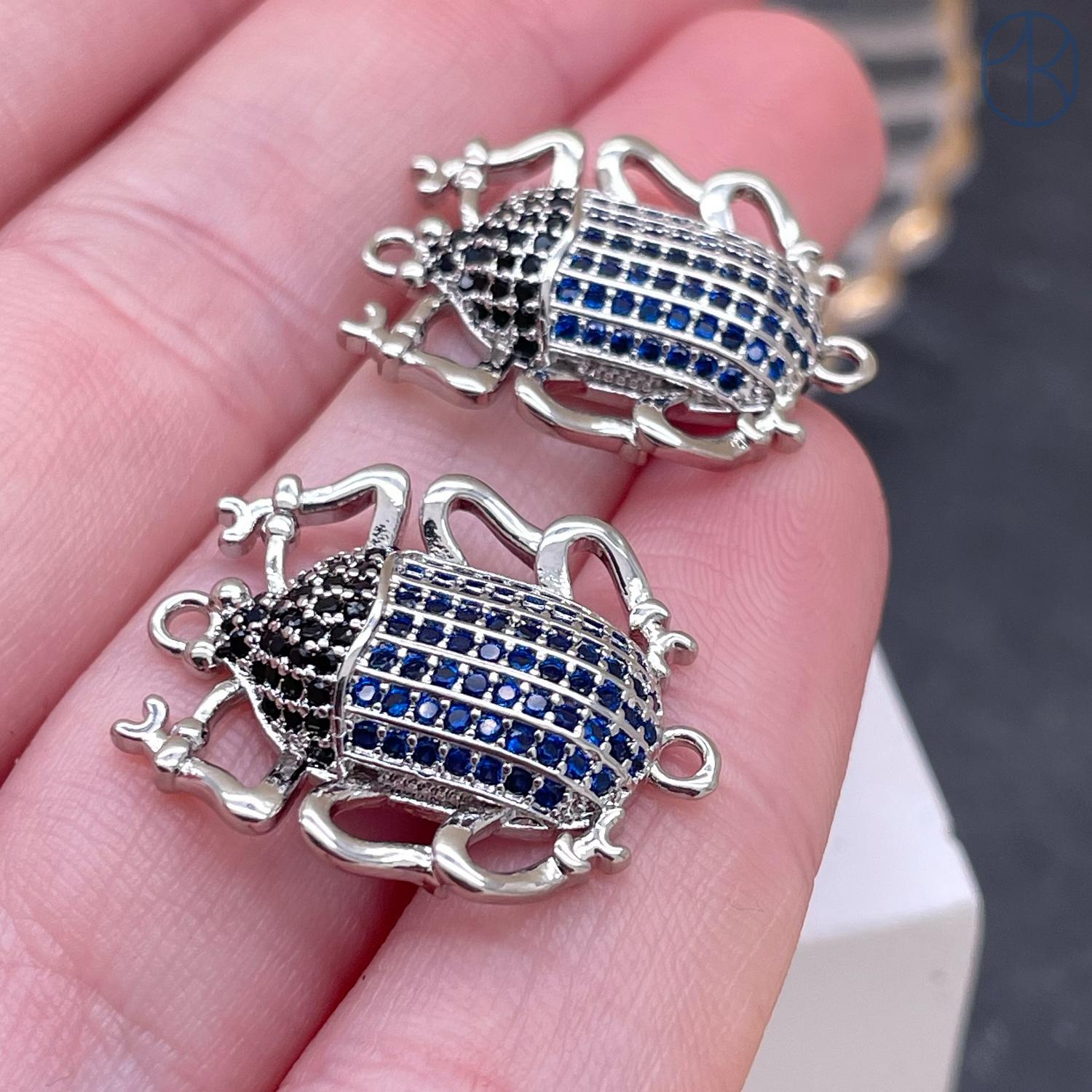 Коннектор жук цирконы, цвет серебро 23х18 мм