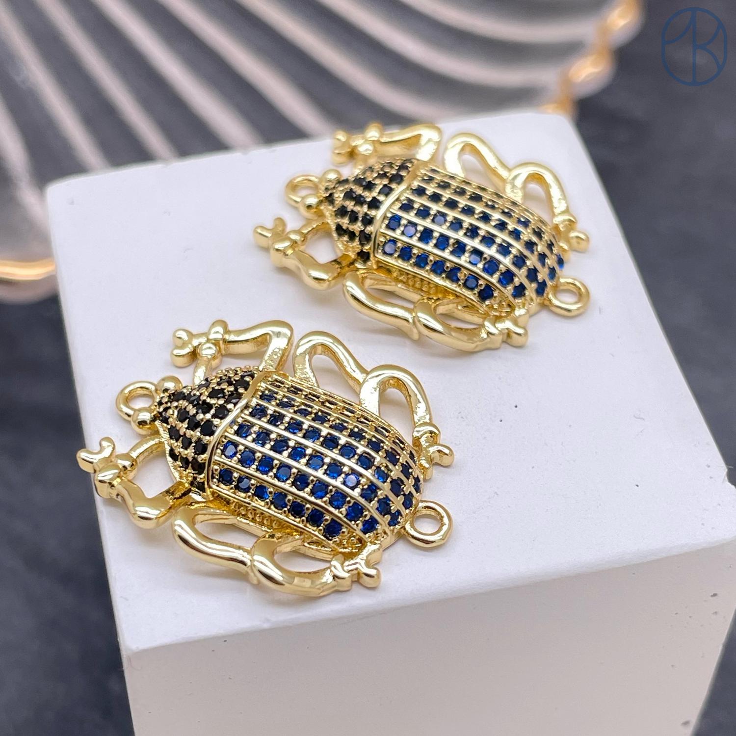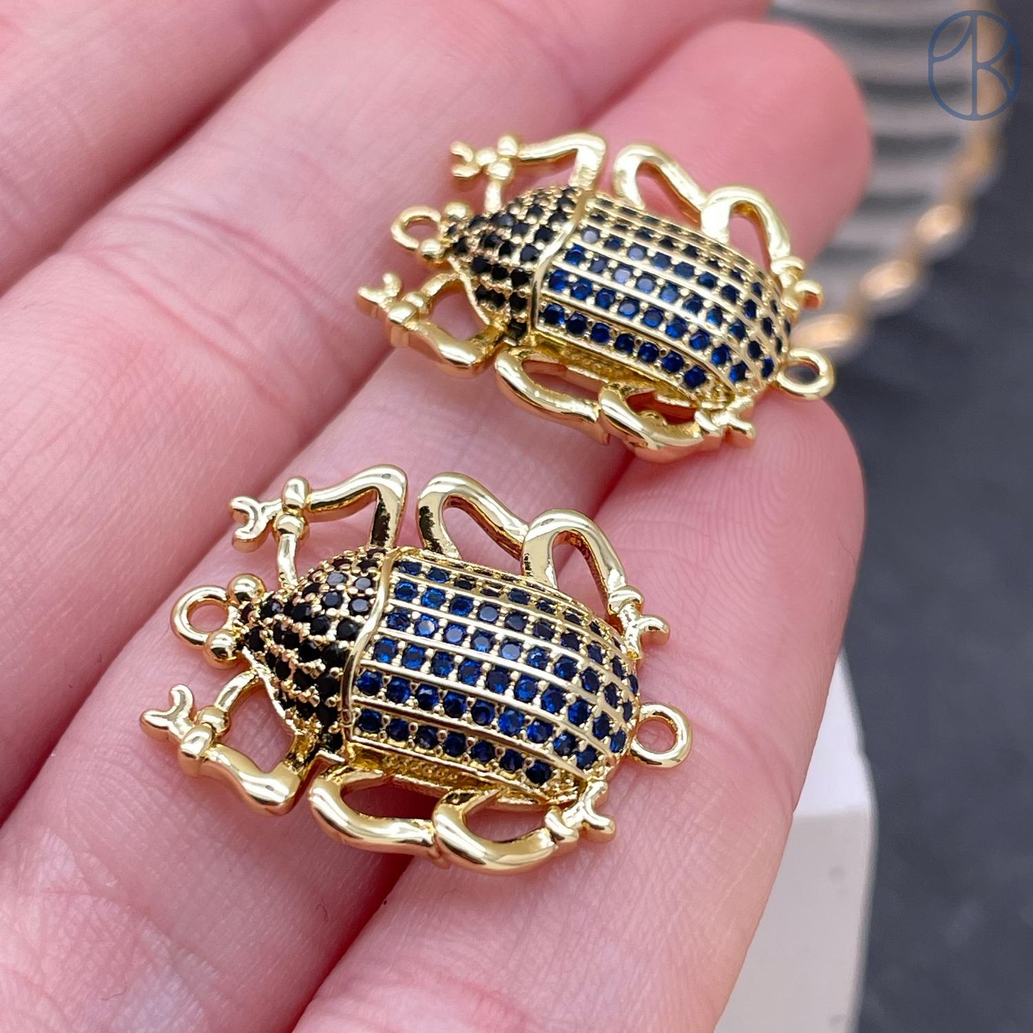 Коннектор жук цирконы, цвет золото 23х18 мм