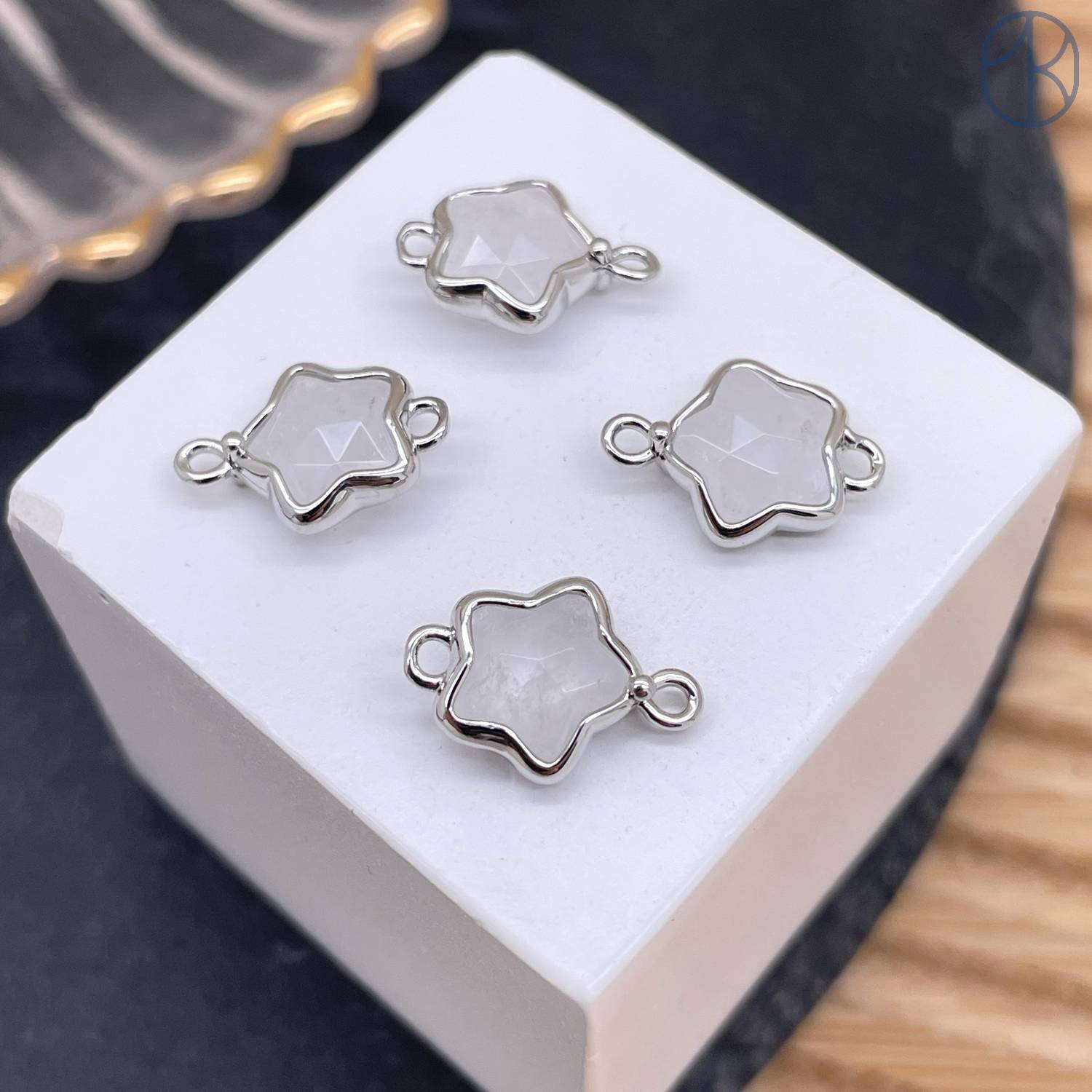 Коннектор звезда огранка горный хрусталь, цвет серебро ~ 12 мм