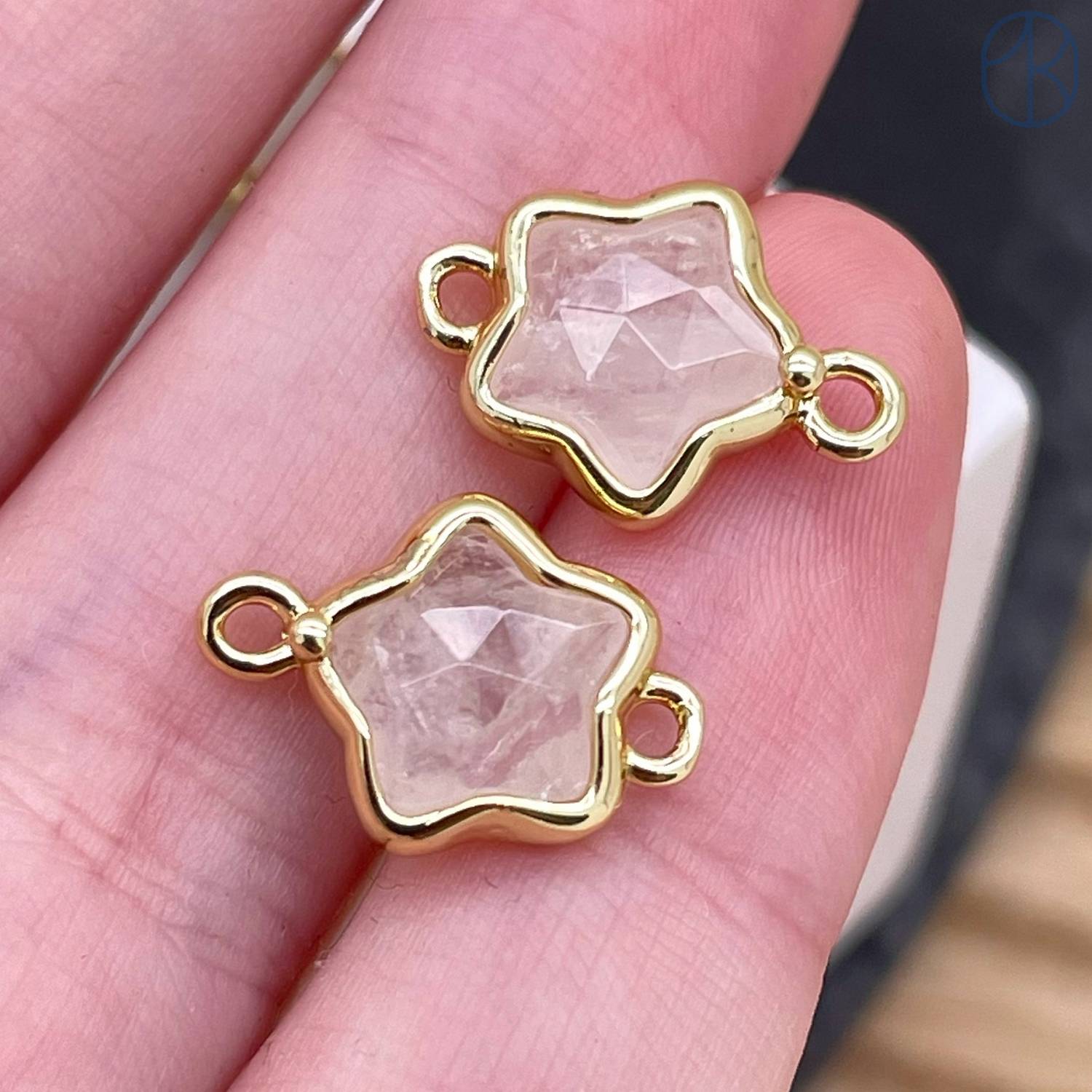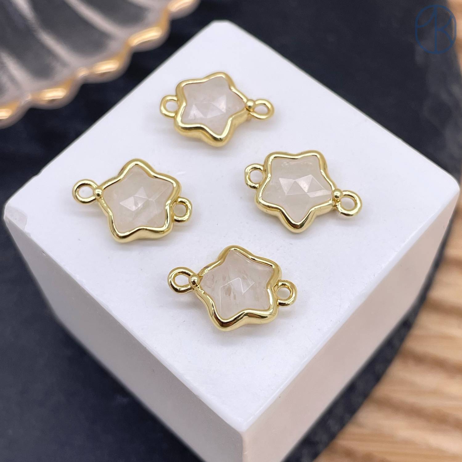 Коннектор звезда огранка горный хрусталь, цвет золото ~ 12 мм