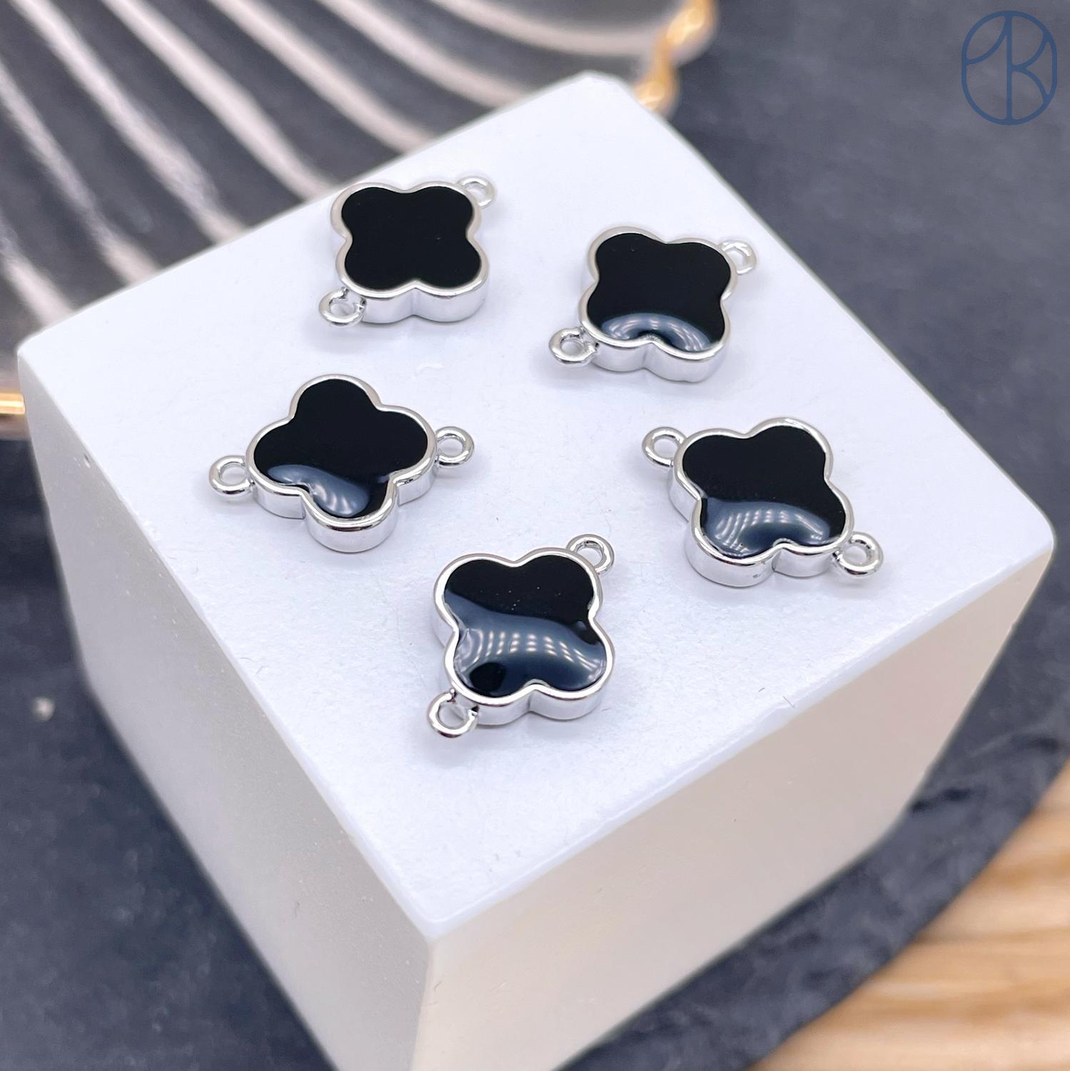 Коннектор клевер черная эмаль, цвет серебро 10х12 мм
