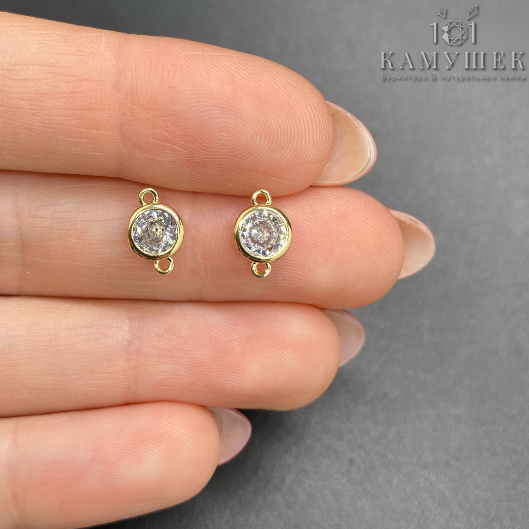 Коннектор кольцо цирконы, цвет серебро 10 мм