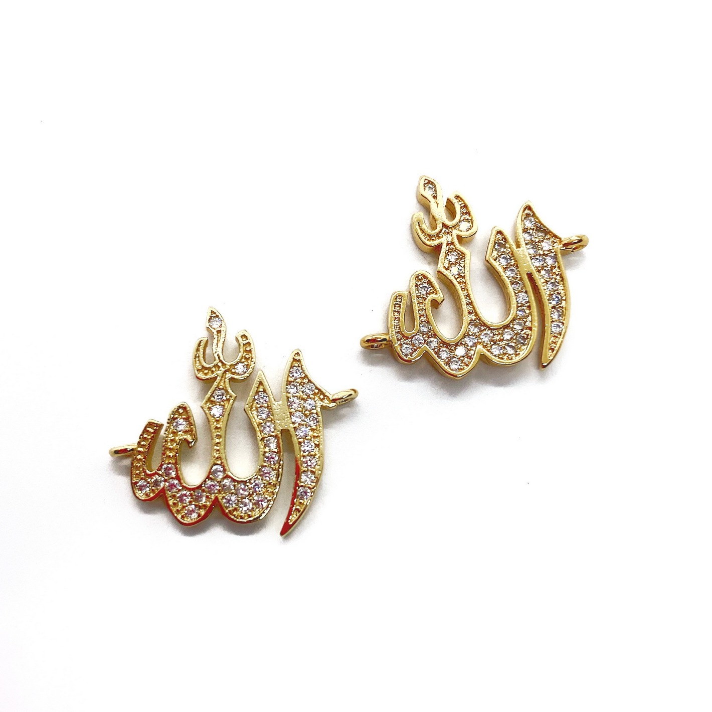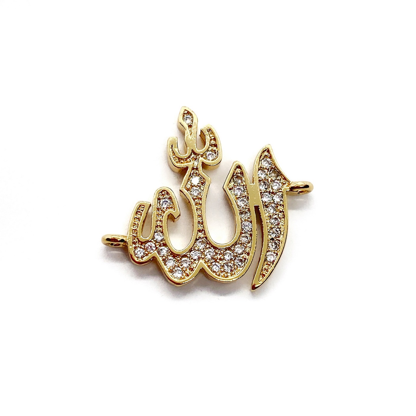 Коннектор мусульманский цирконы, цвет золото 21х18 мм