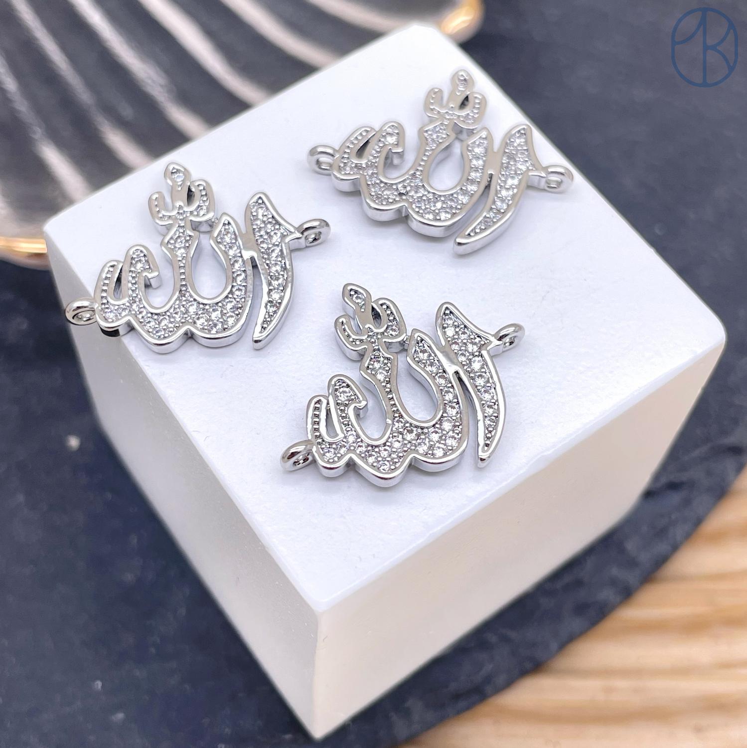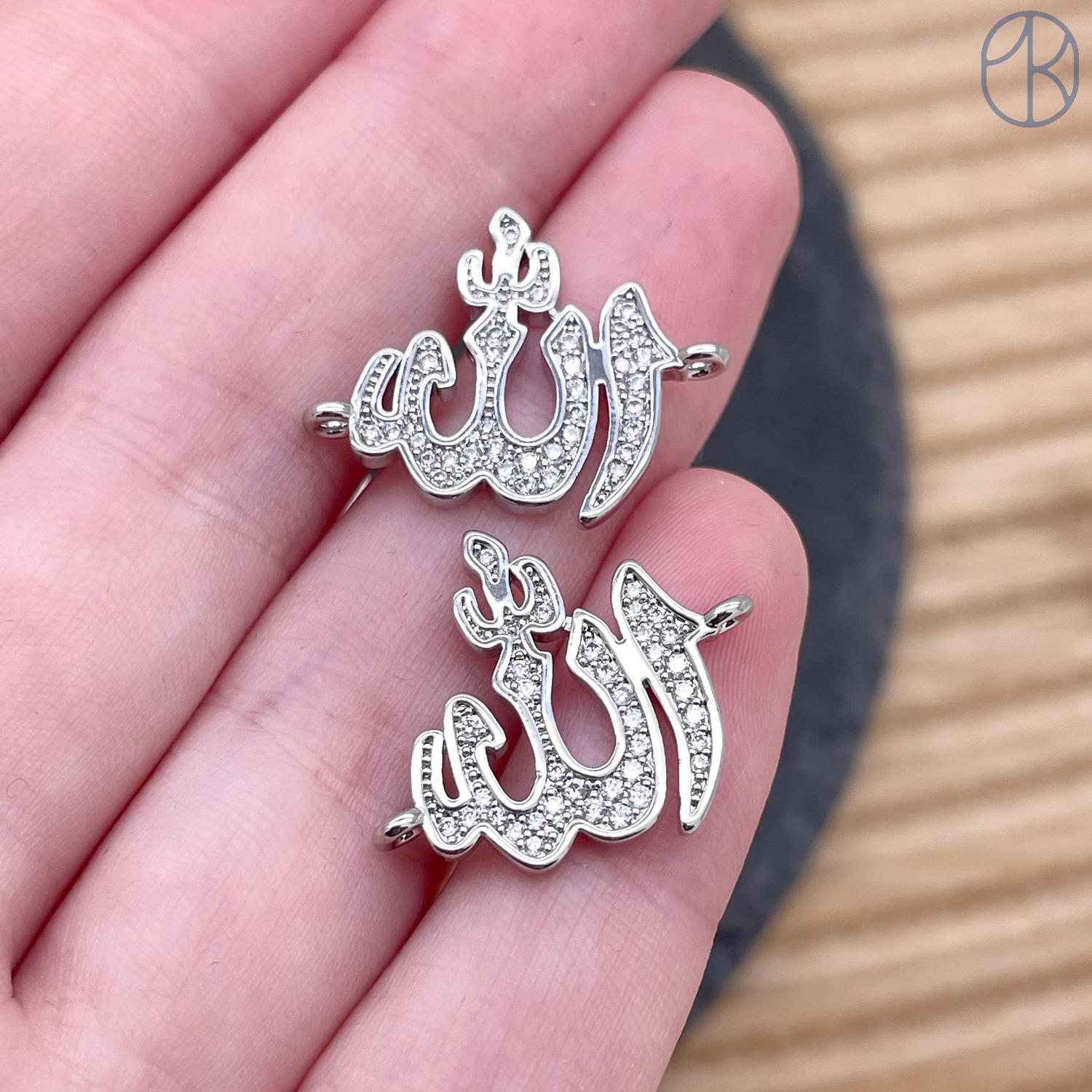 Коннектор Мусульманский с цирконами, Цвет серебро 21, 7*18, 4мм