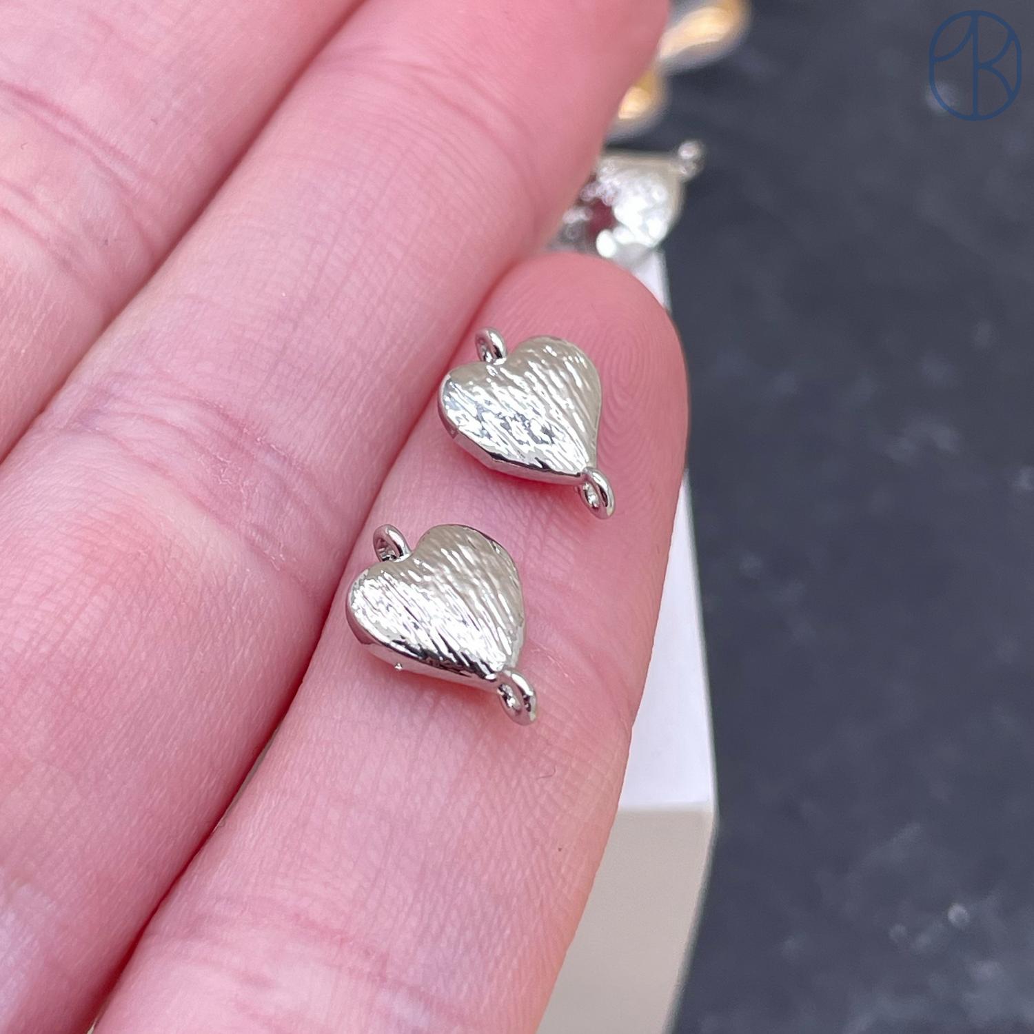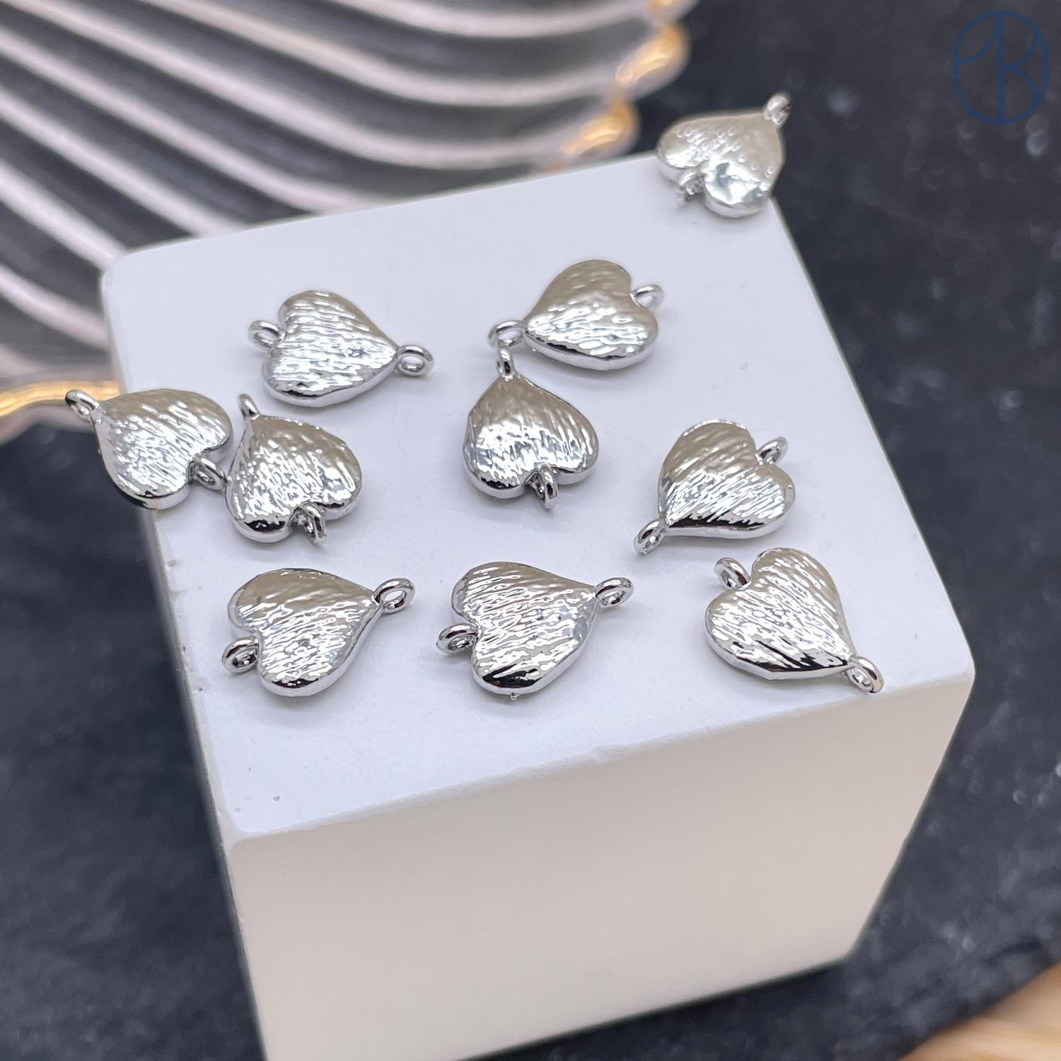Коннектор сердце фактурное, цвет серебро 11х7 мм