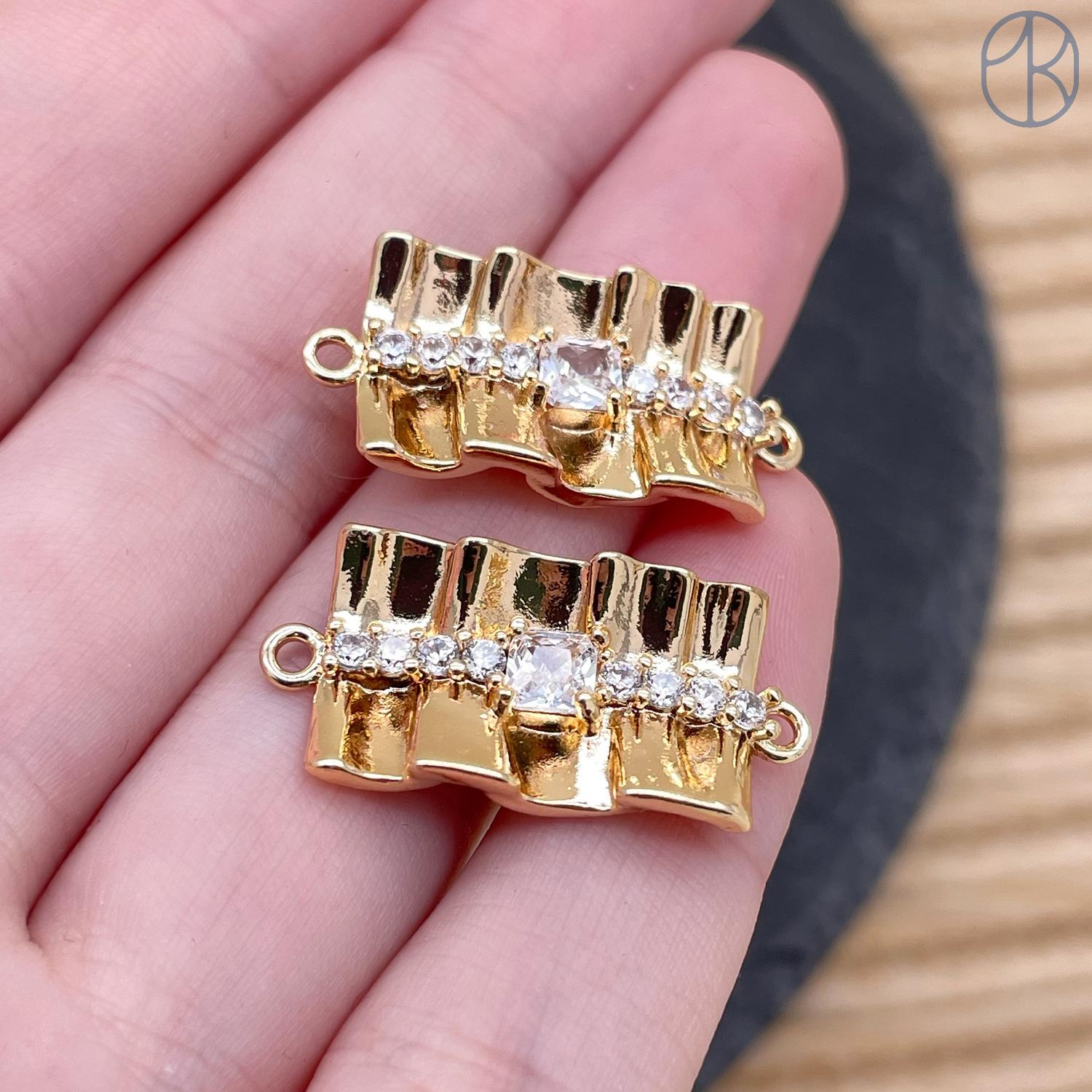 Коннектор цирконы, цвет золото 23х12 мм