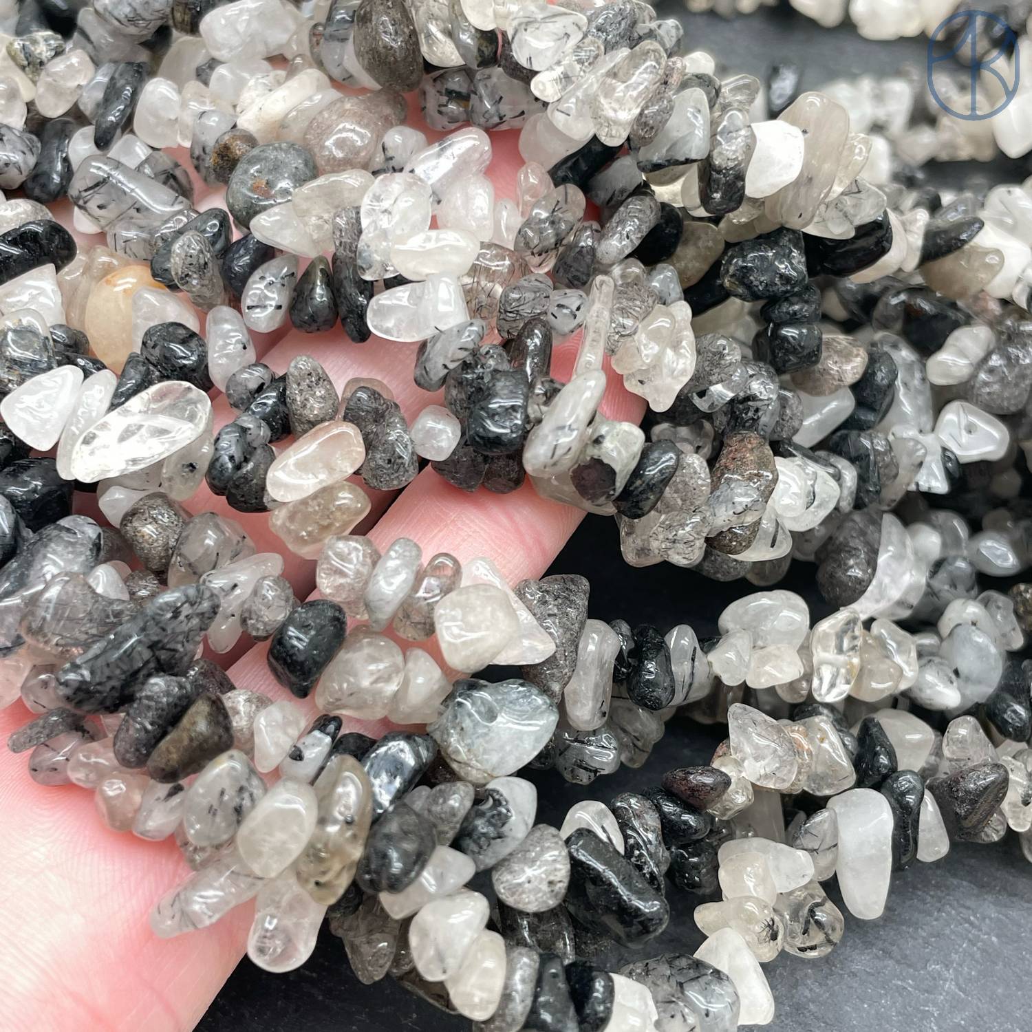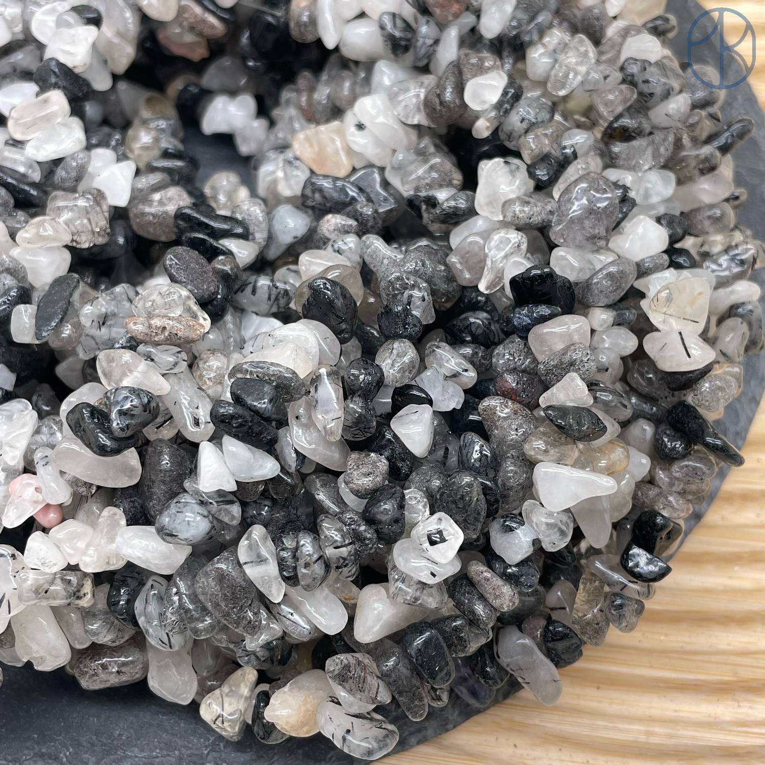 Крошка Кварц Рутиловый Турмалиновый ширина бусин ~ 6-11 мм