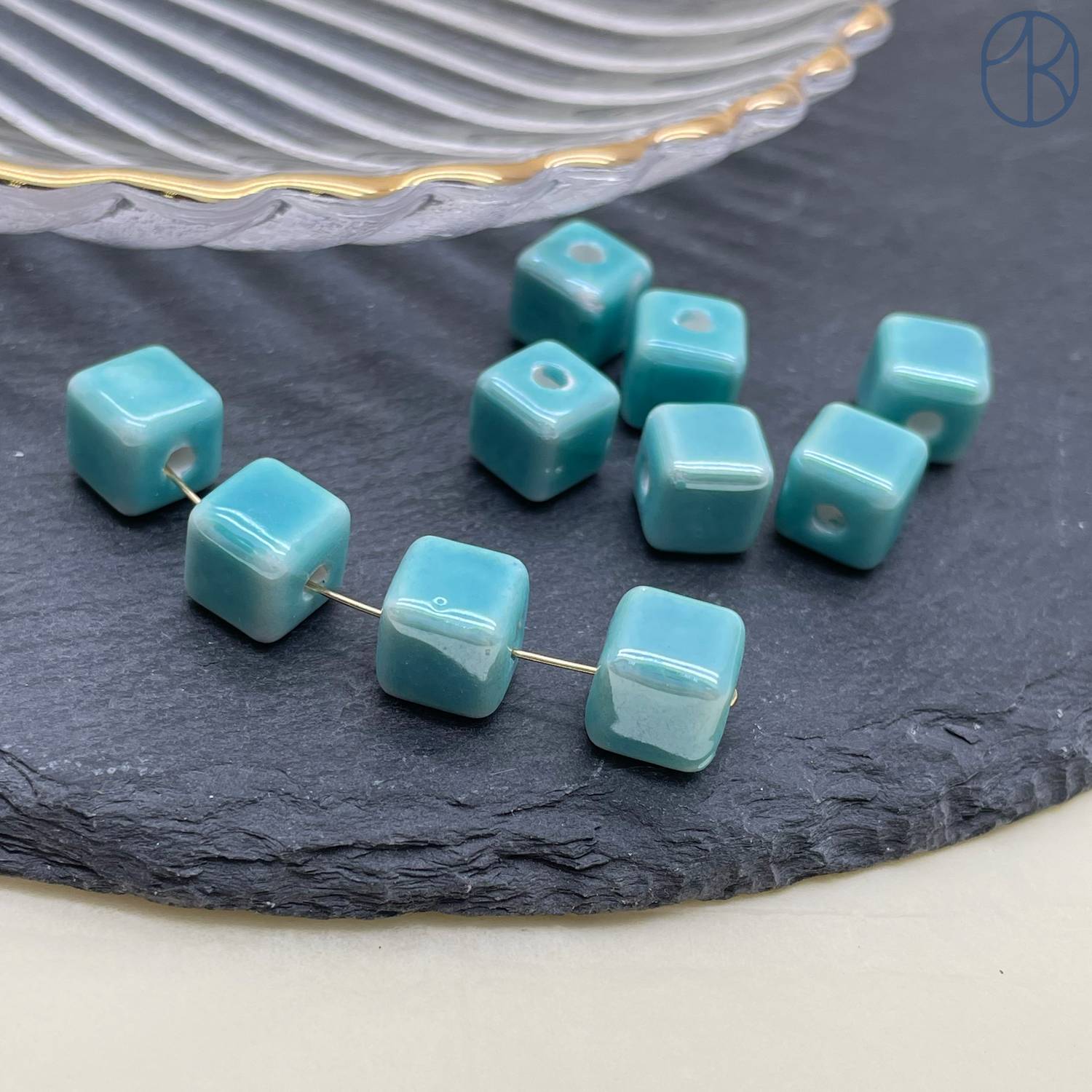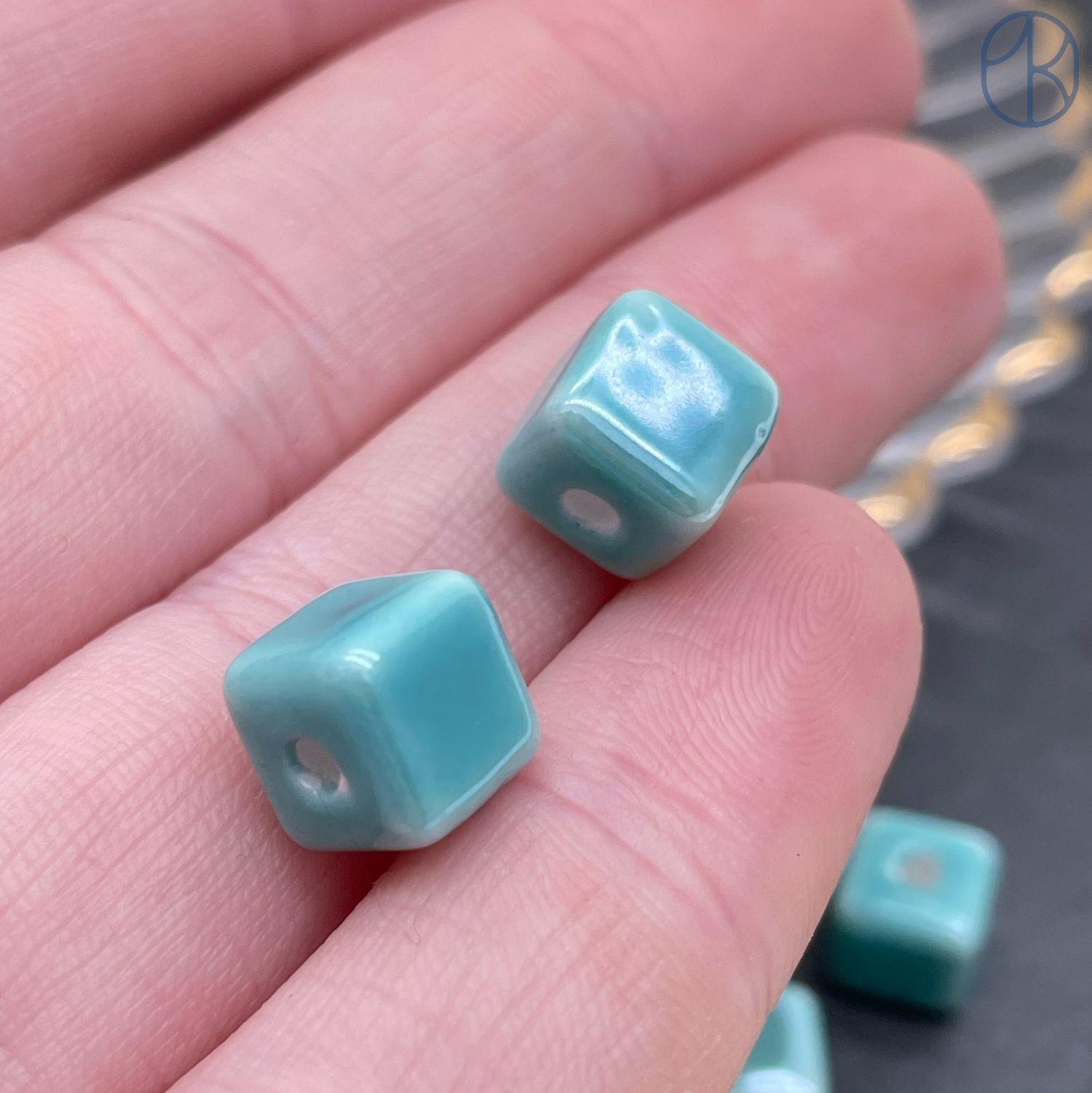 Кубик керамика, цвет бирюзовый 9 мм штучно