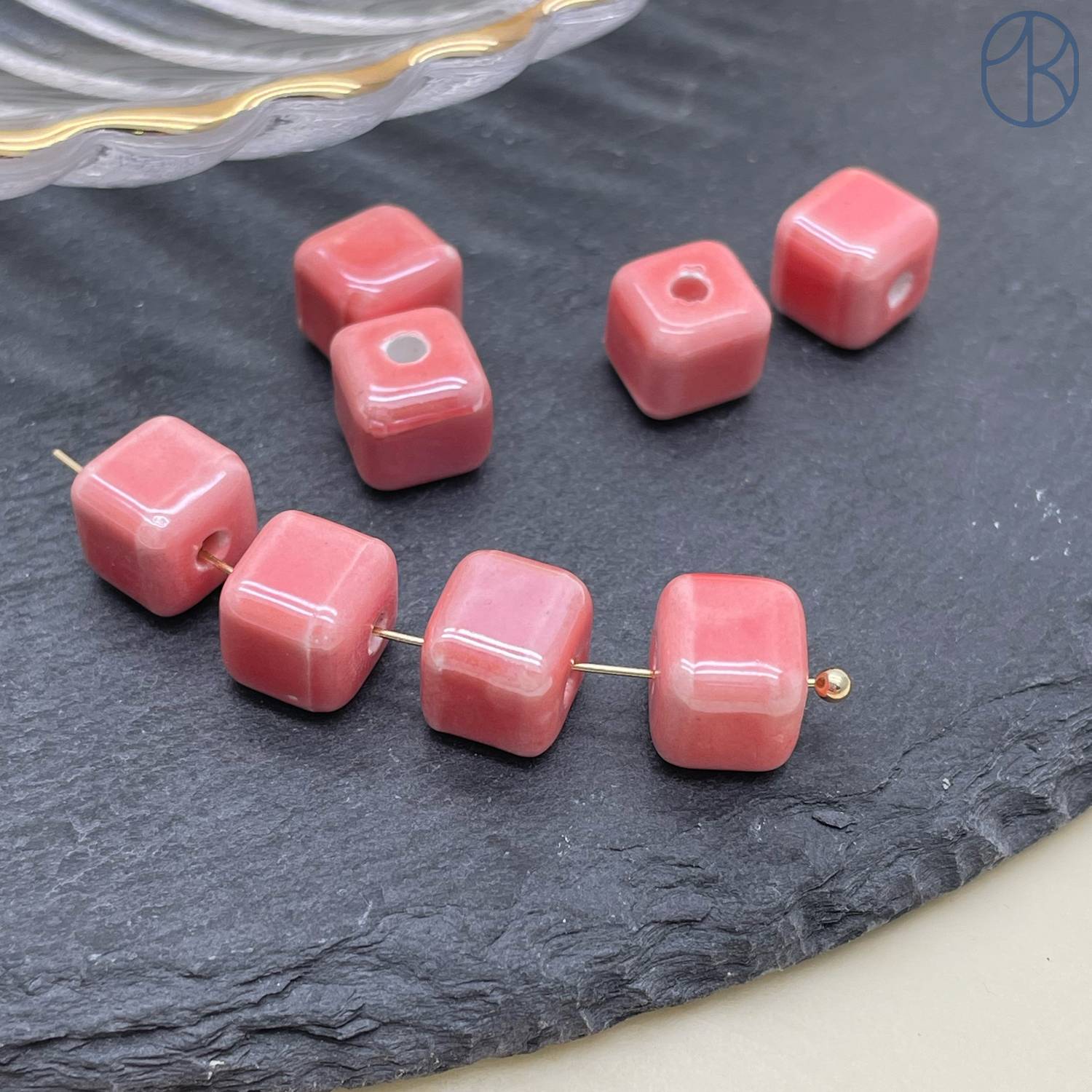 Кубик керамика, цвет лососевый 9 мм штучно