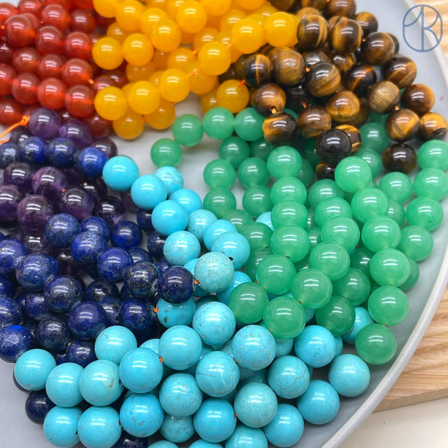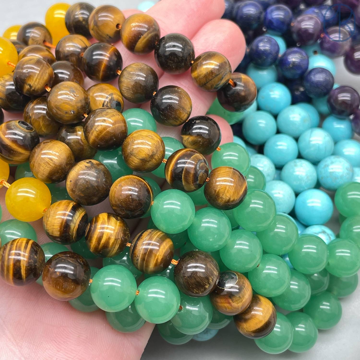 Микс: тигровый глаз, турквенит (магнезит), аметист, сердолик, лазурит, агат, авантюрин