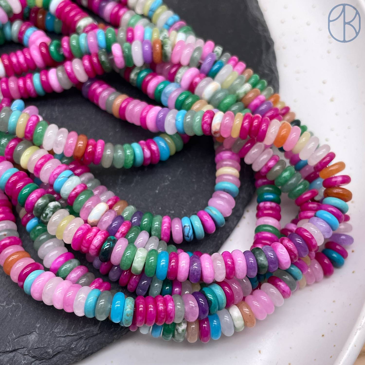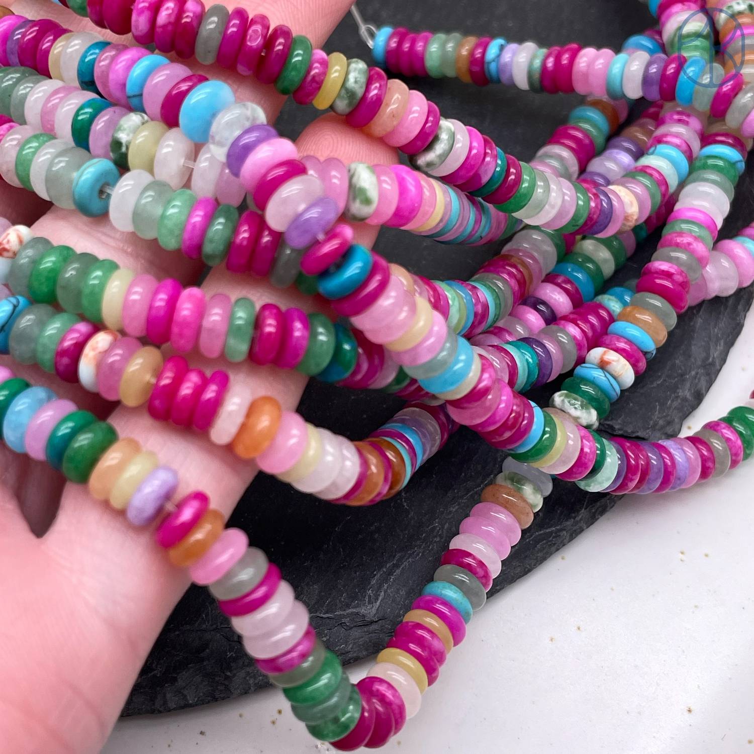 Микс: кварцы тонированные, яшма зеленая пятнистая, гторный хрусталь. авантюрин зеленый, турквенит (магнезит)