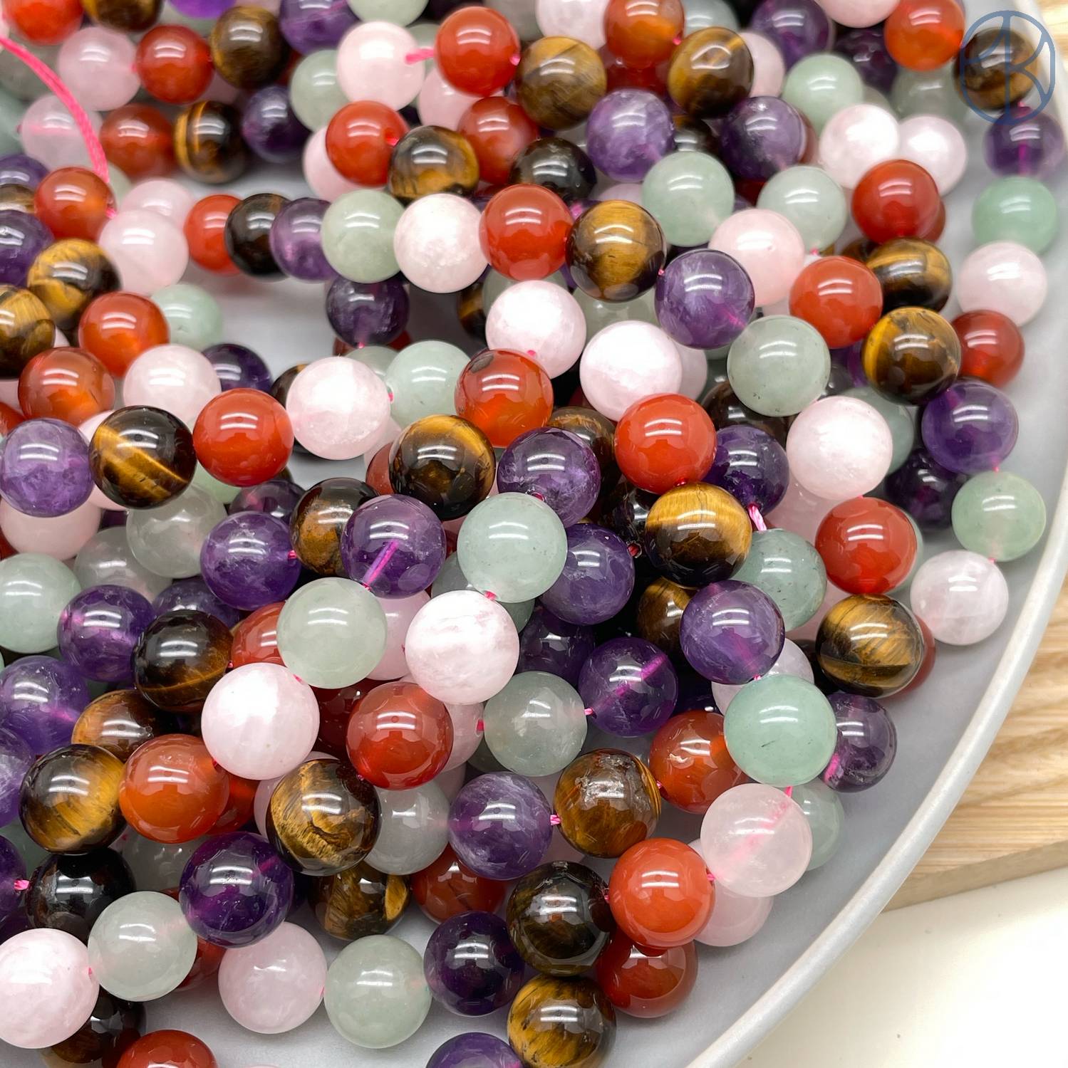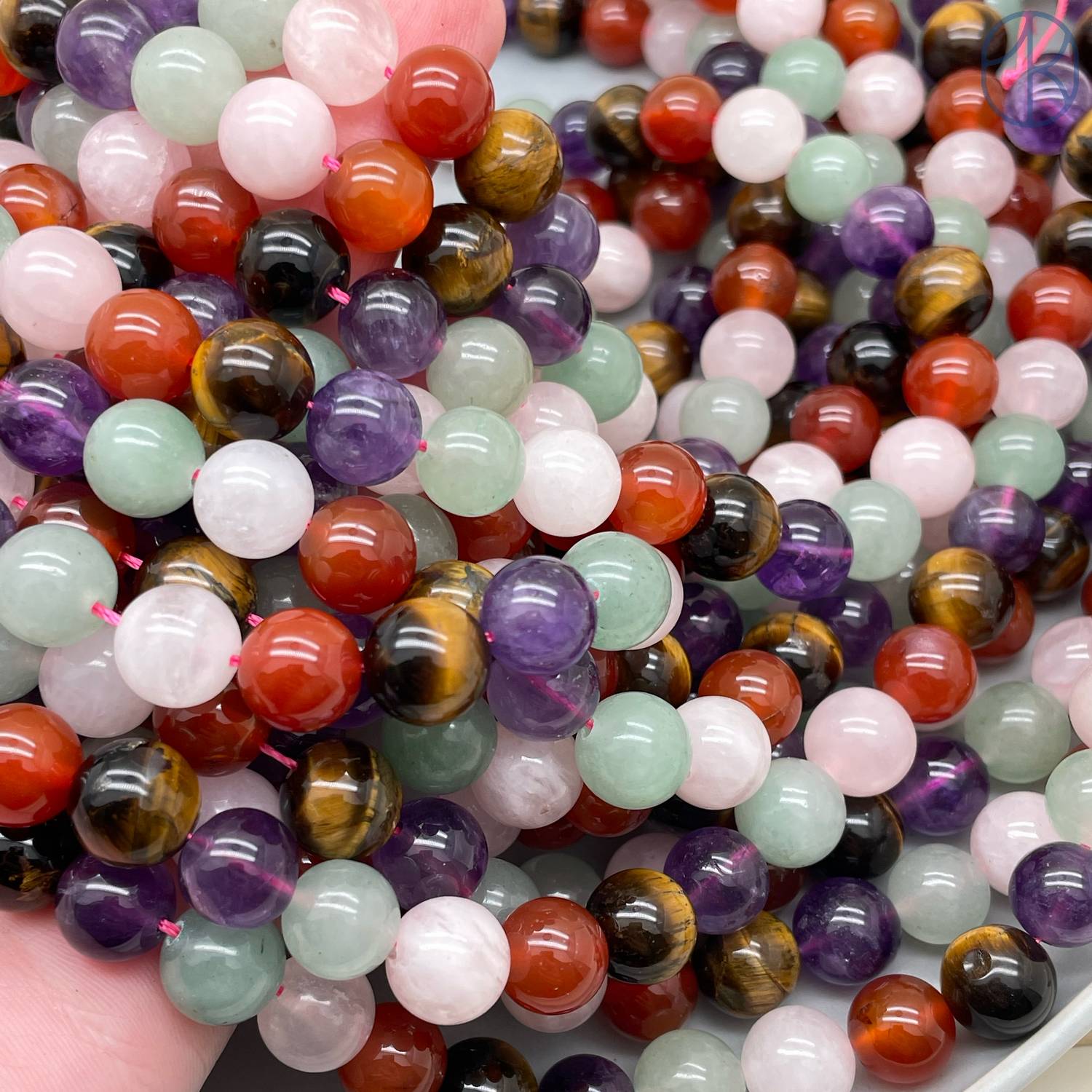 Микс: тигровый глаз, аметист, сердолик, агат, авантюрин, розовый кварц