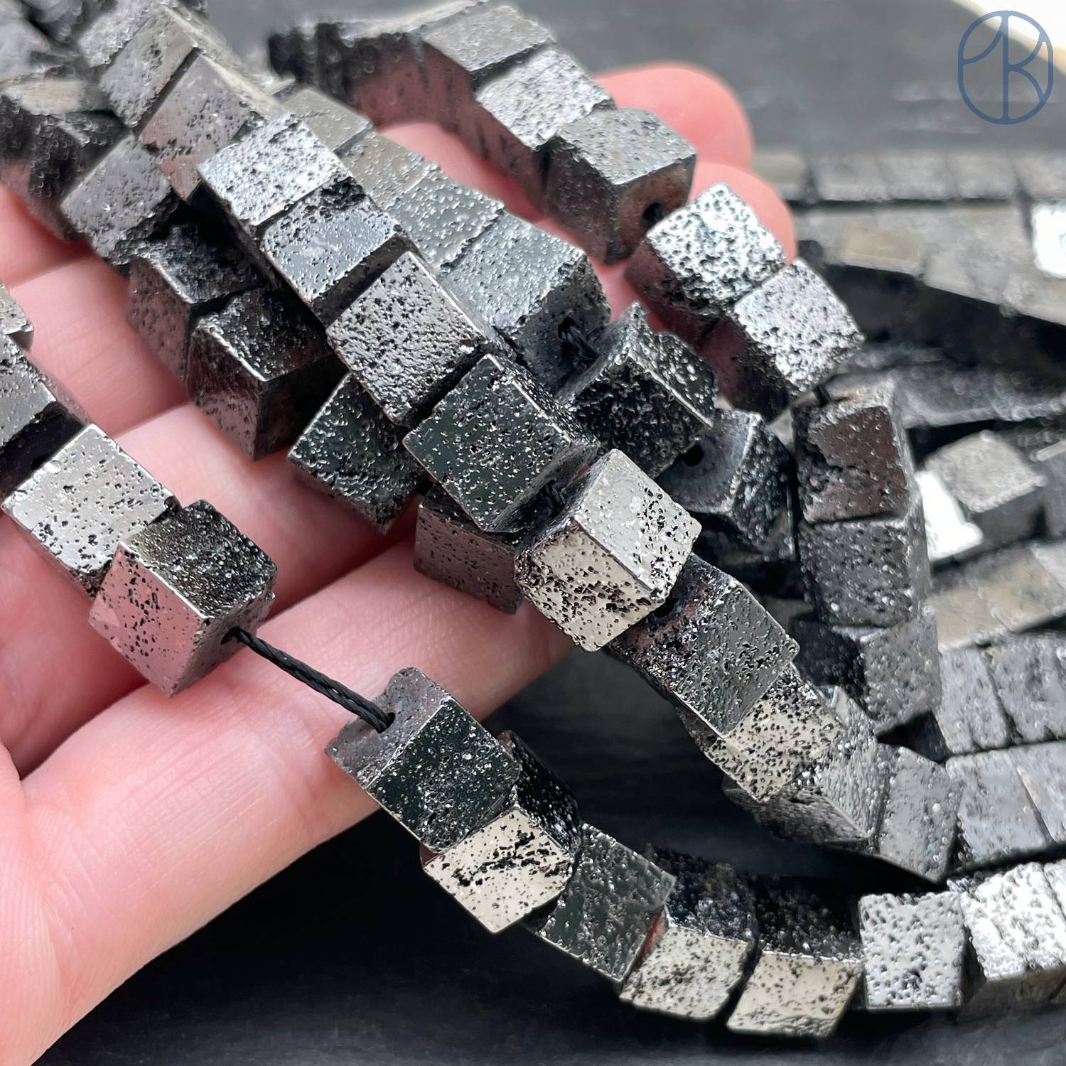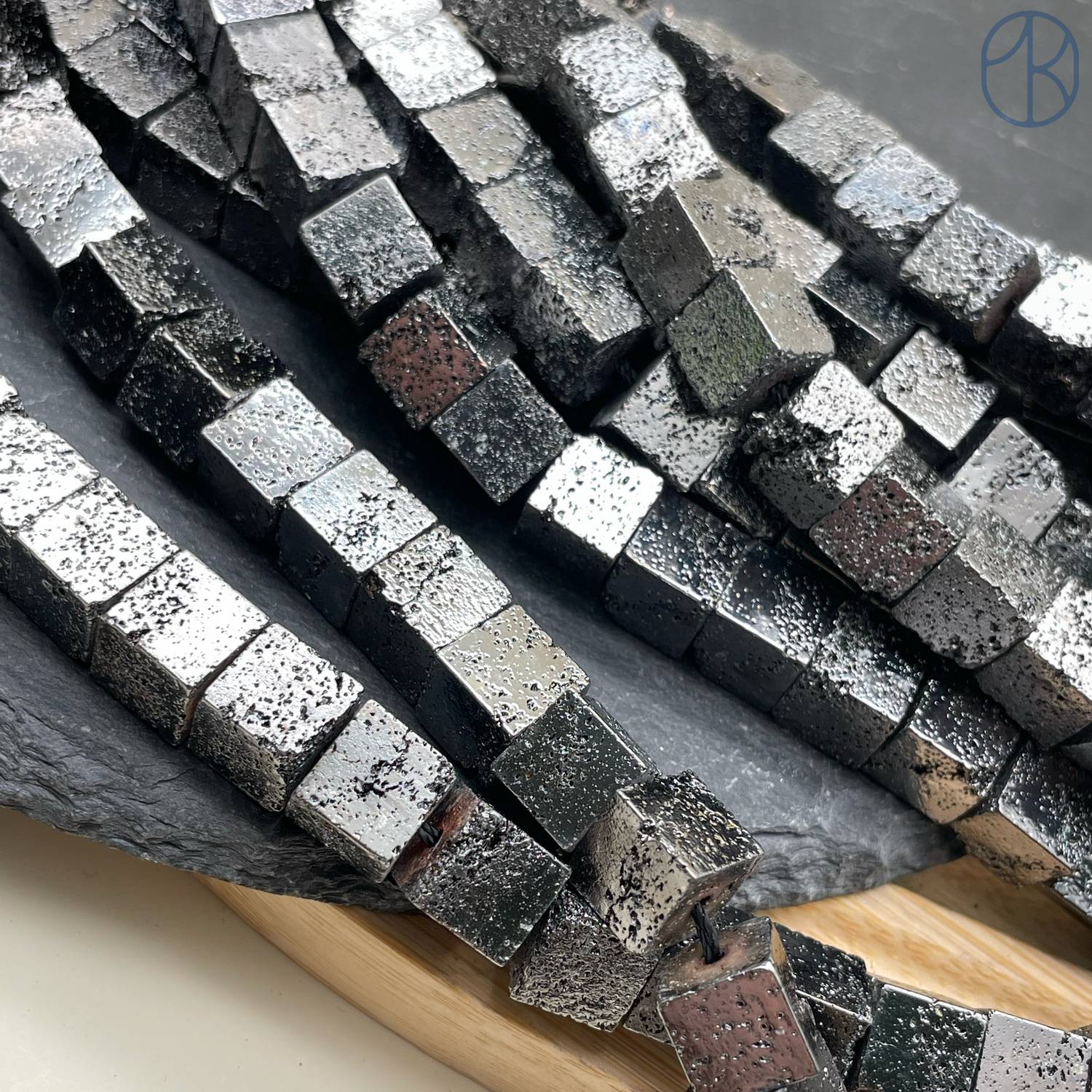 Лава Вулканическая куб с покрытием темное серебро 8 мм