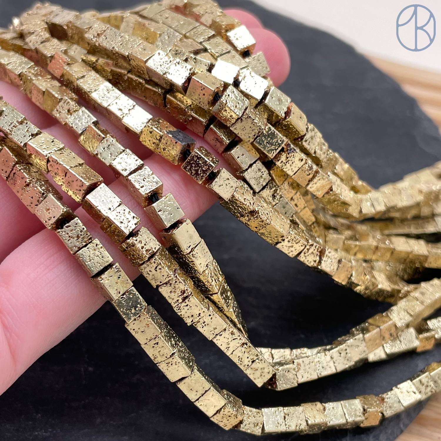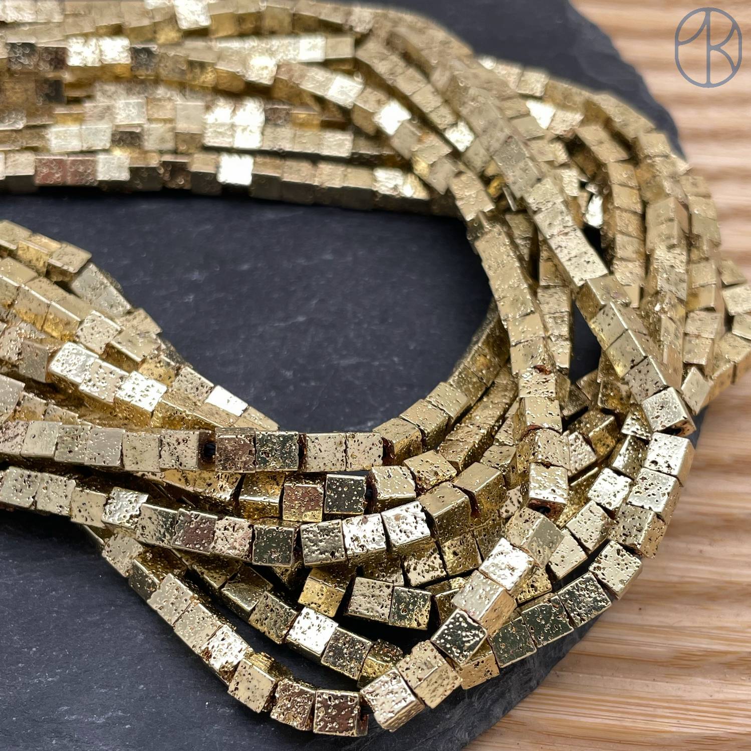 Лава Вулканическая куб с покрытием темное золото 4 мм