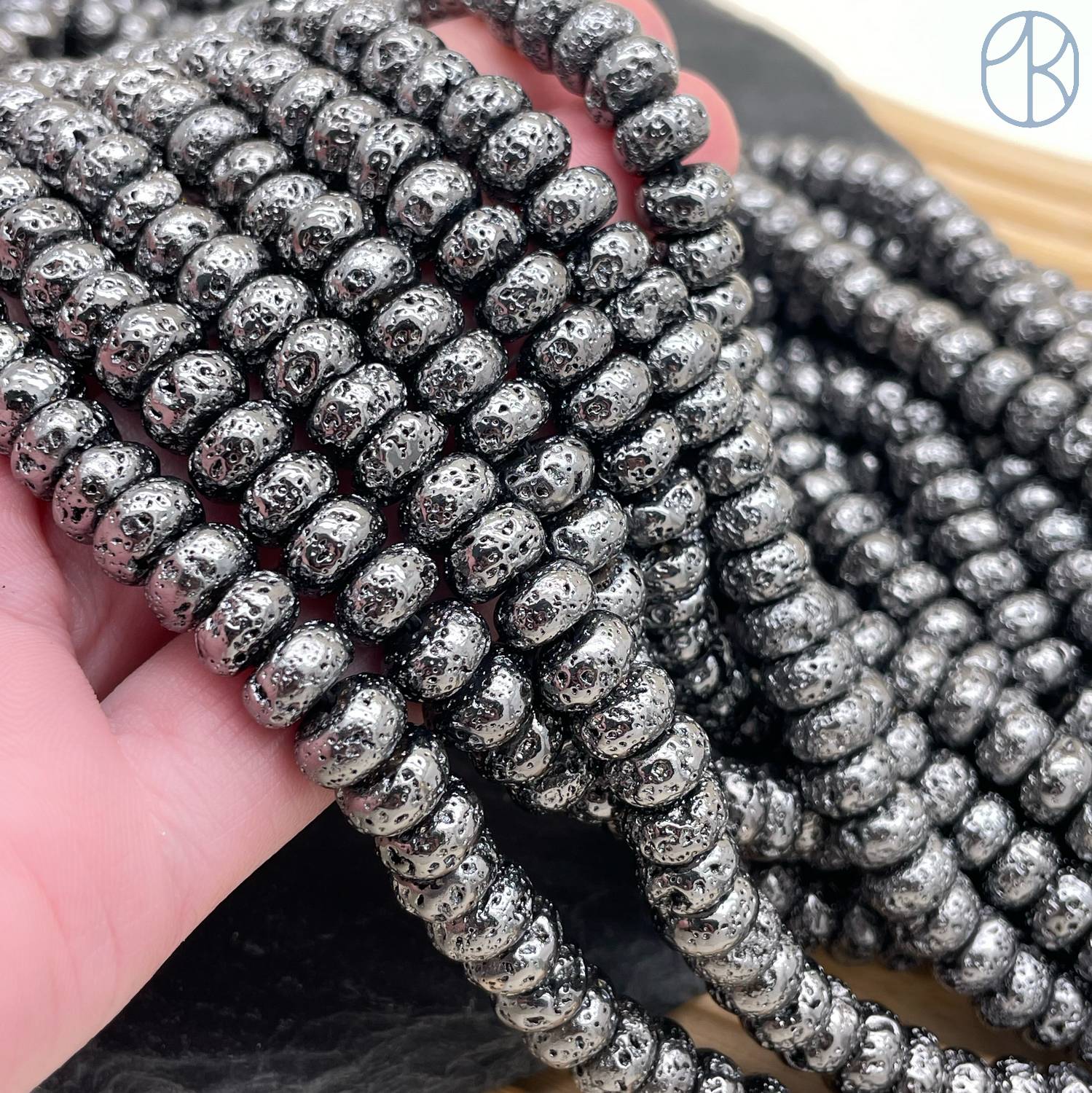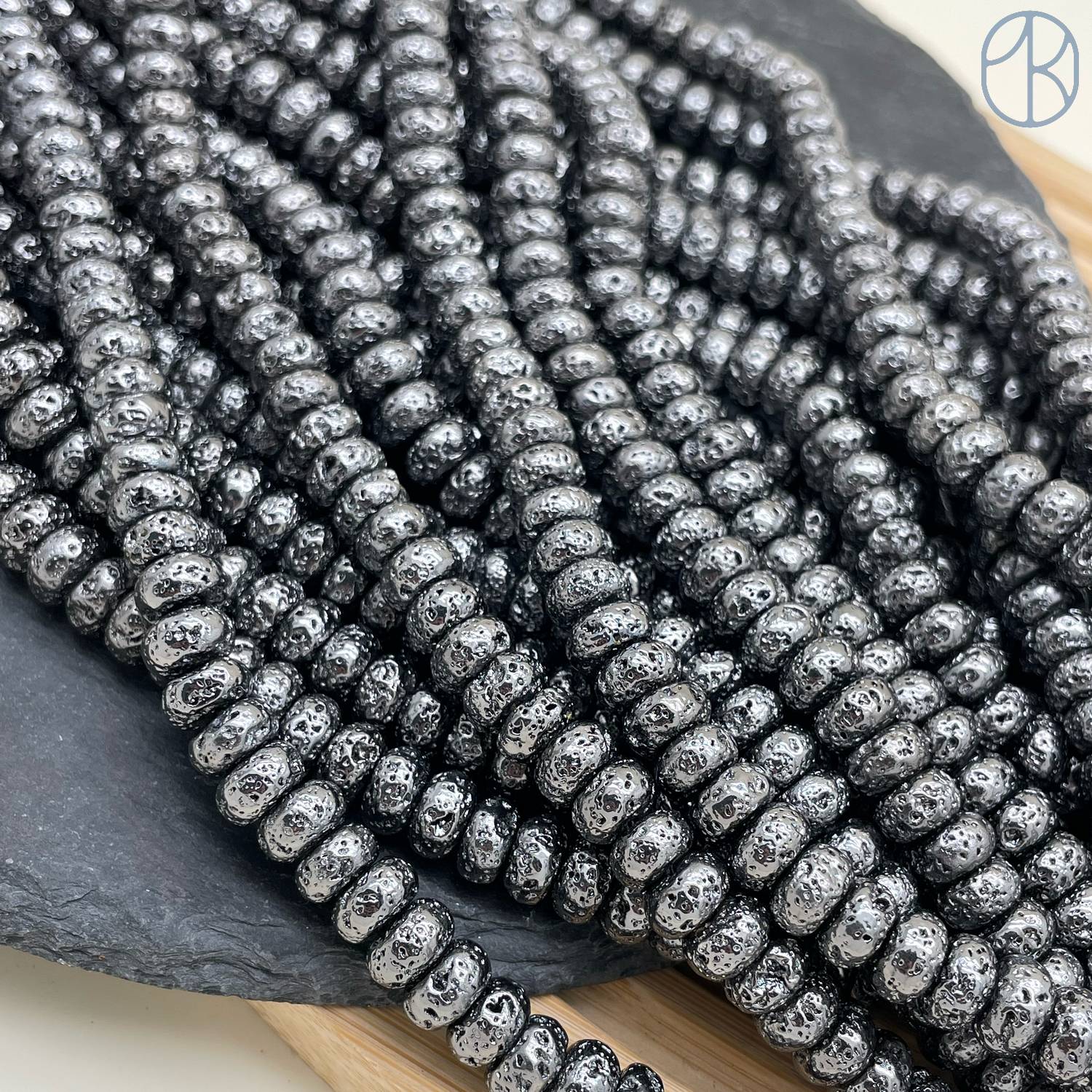 Лава Вулканическая рондель с покрытием антрацит 8х4 мм