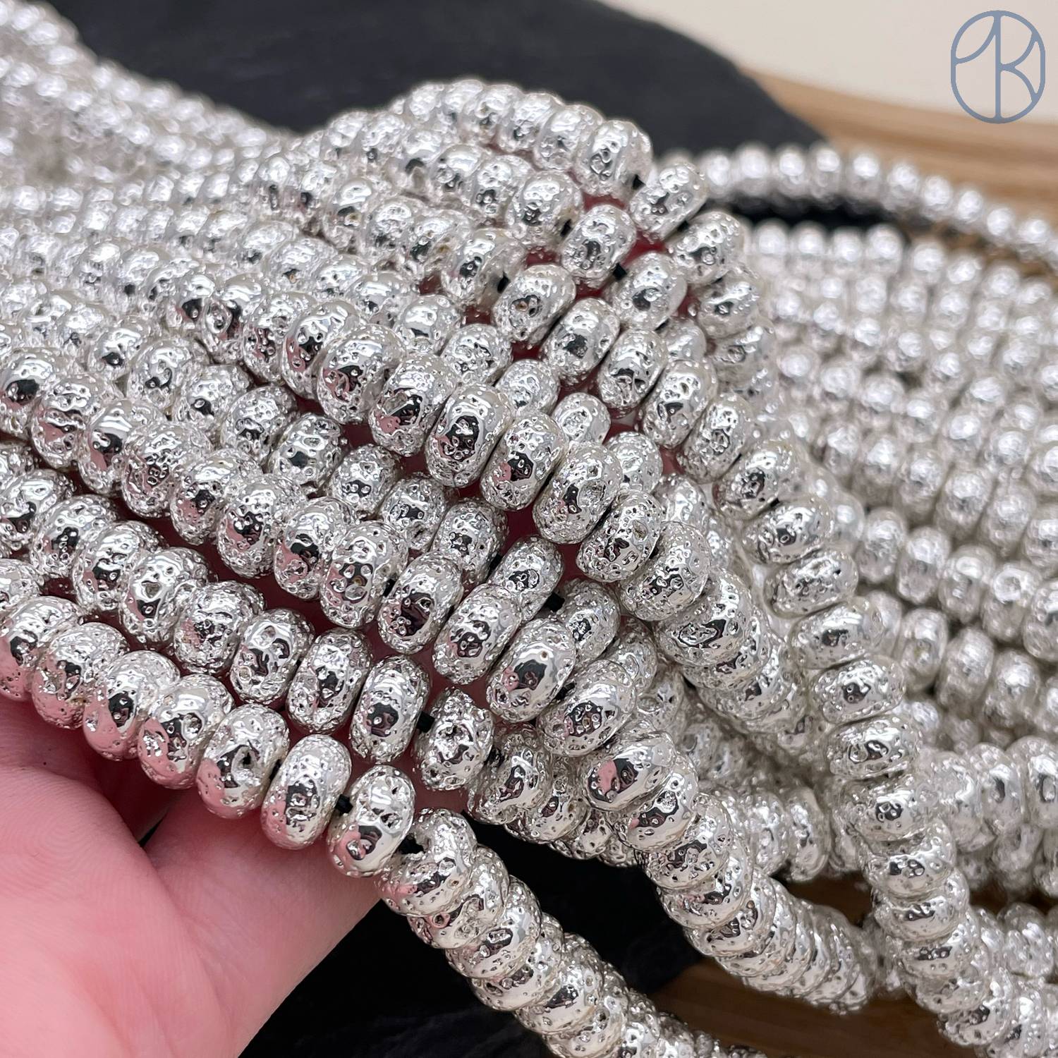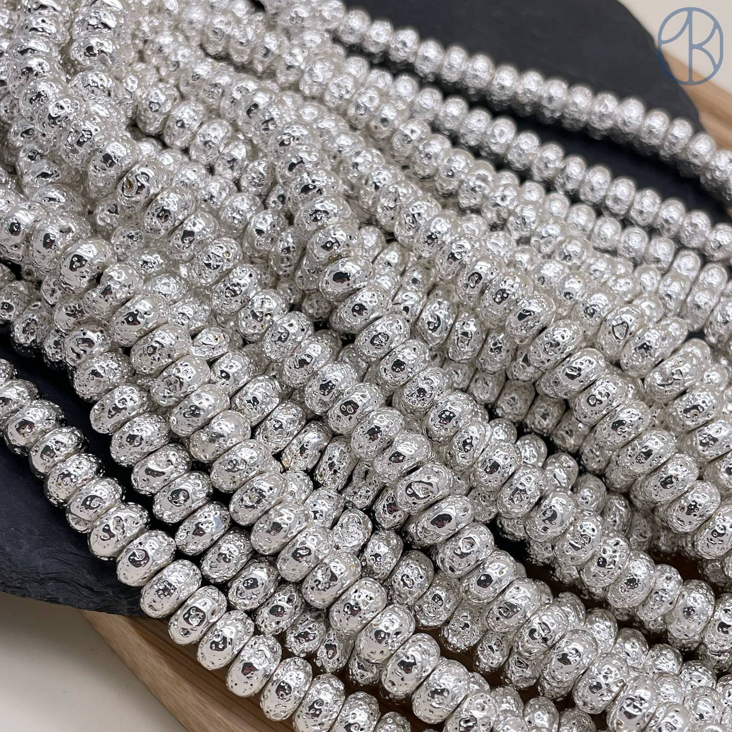 Лава Вулканическая рондель с покрытием светлое серебро 8х4 мм