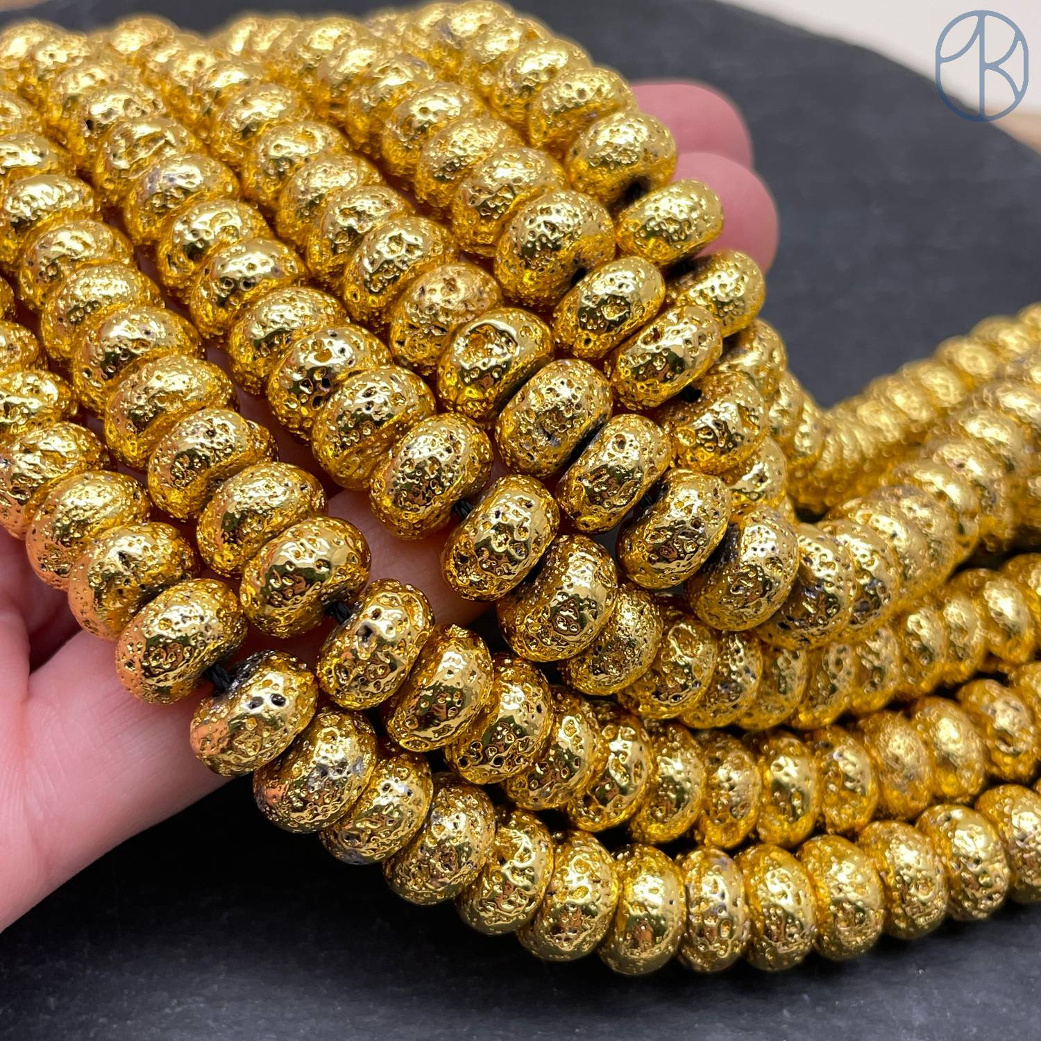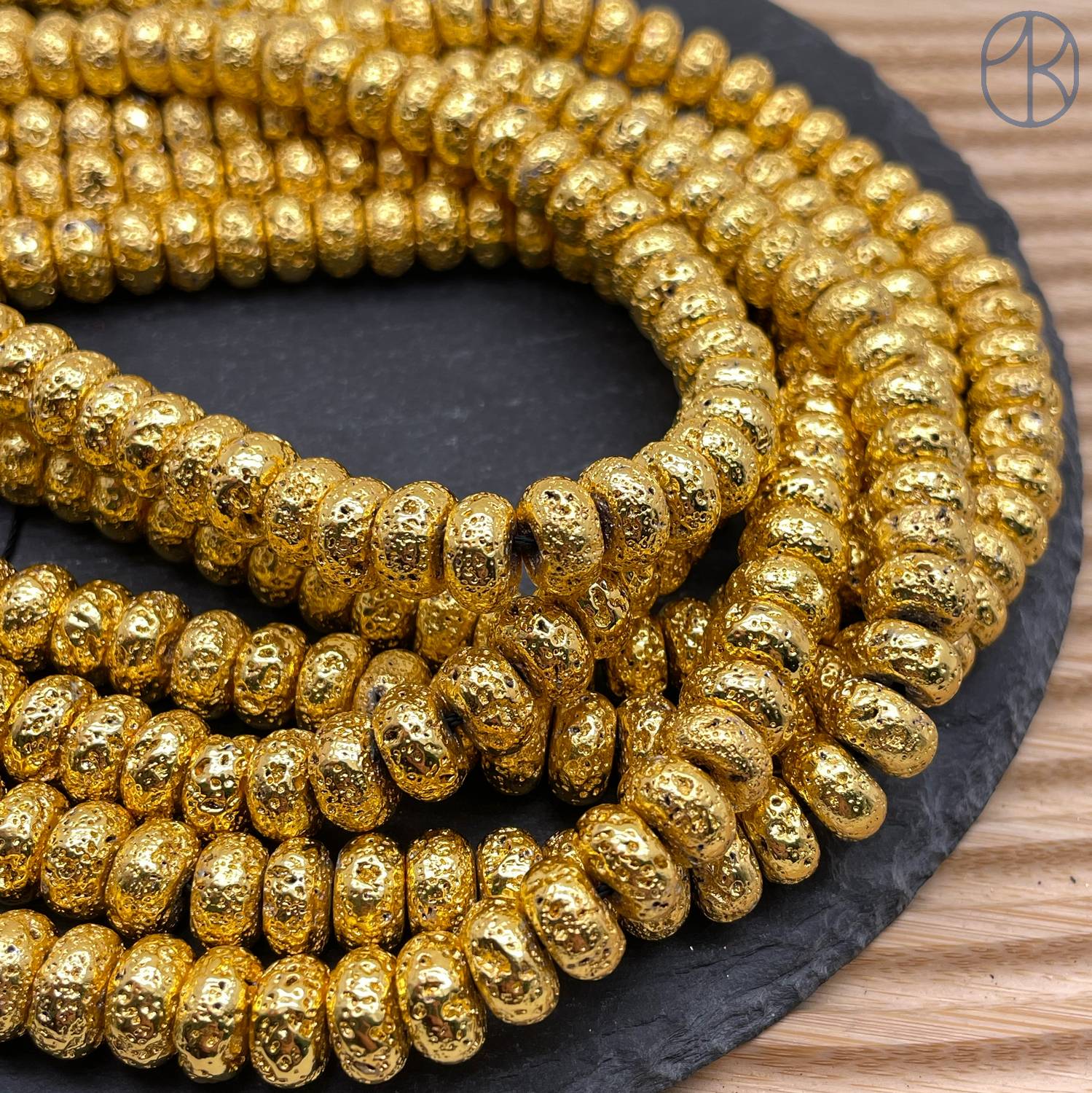 Лава Вулканическая рондель с покрытием светлое золото 10х5 мм