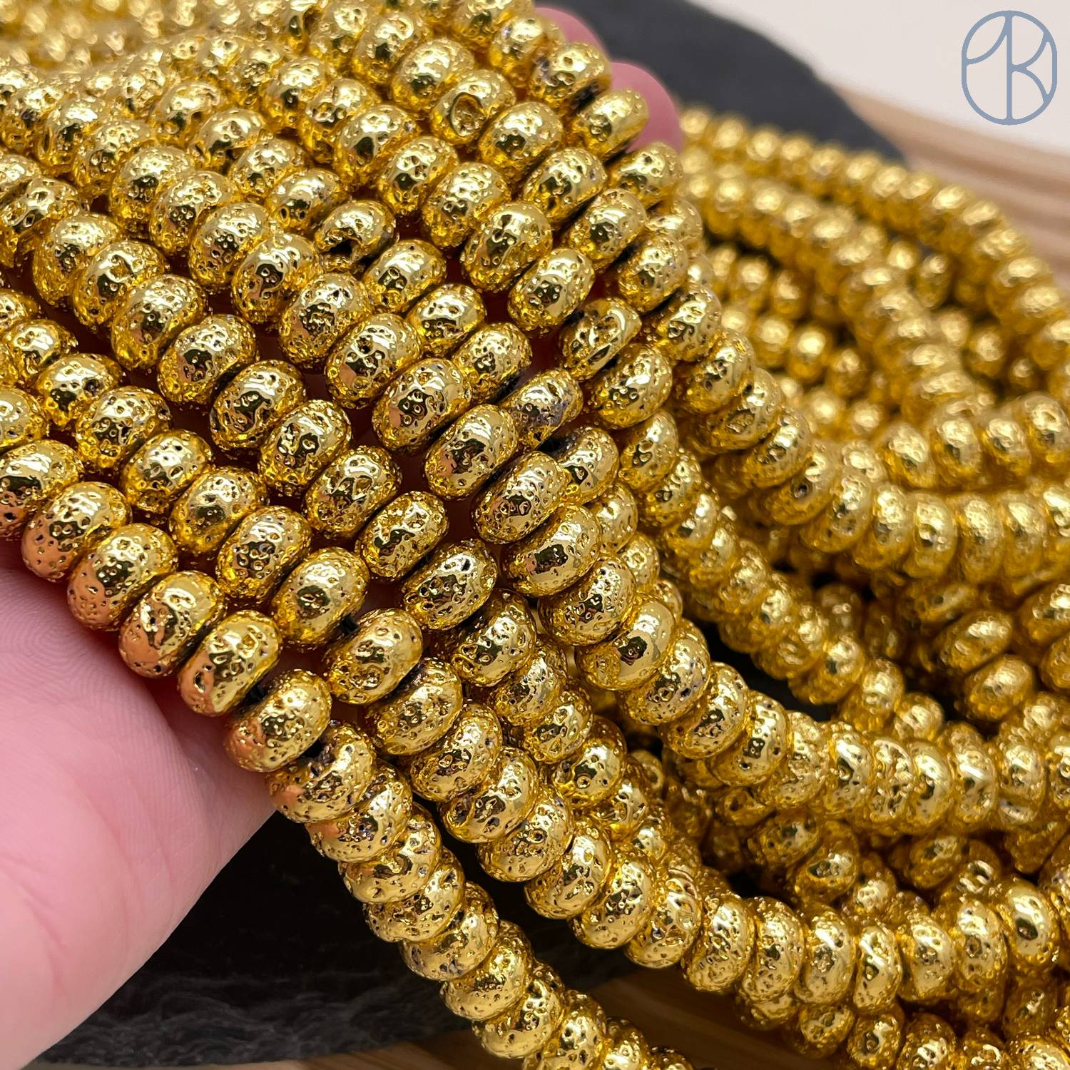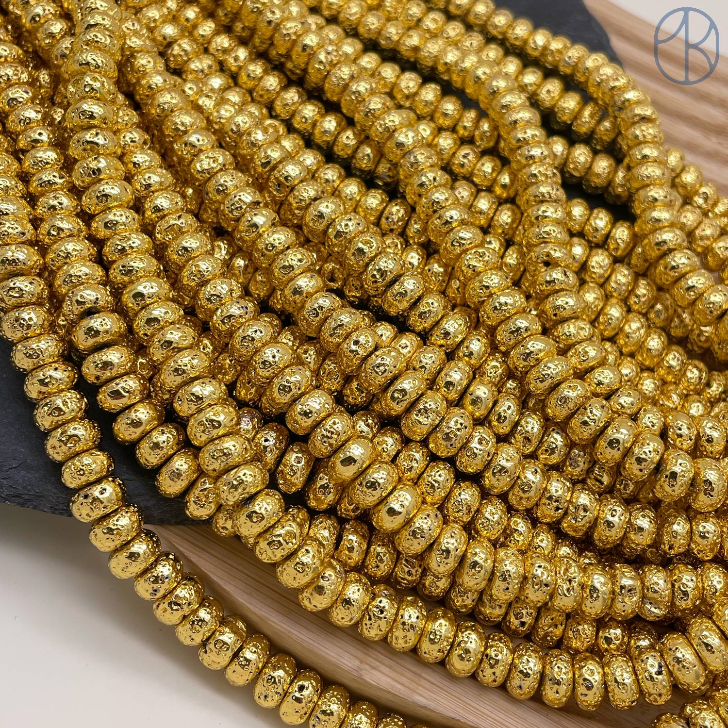 Лава Вулканическая рондель с покрытием светлое золото 8х4 мм
