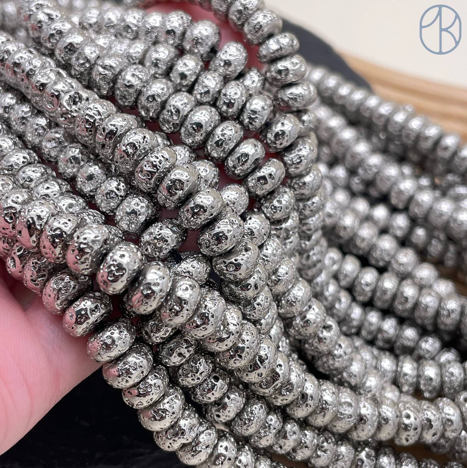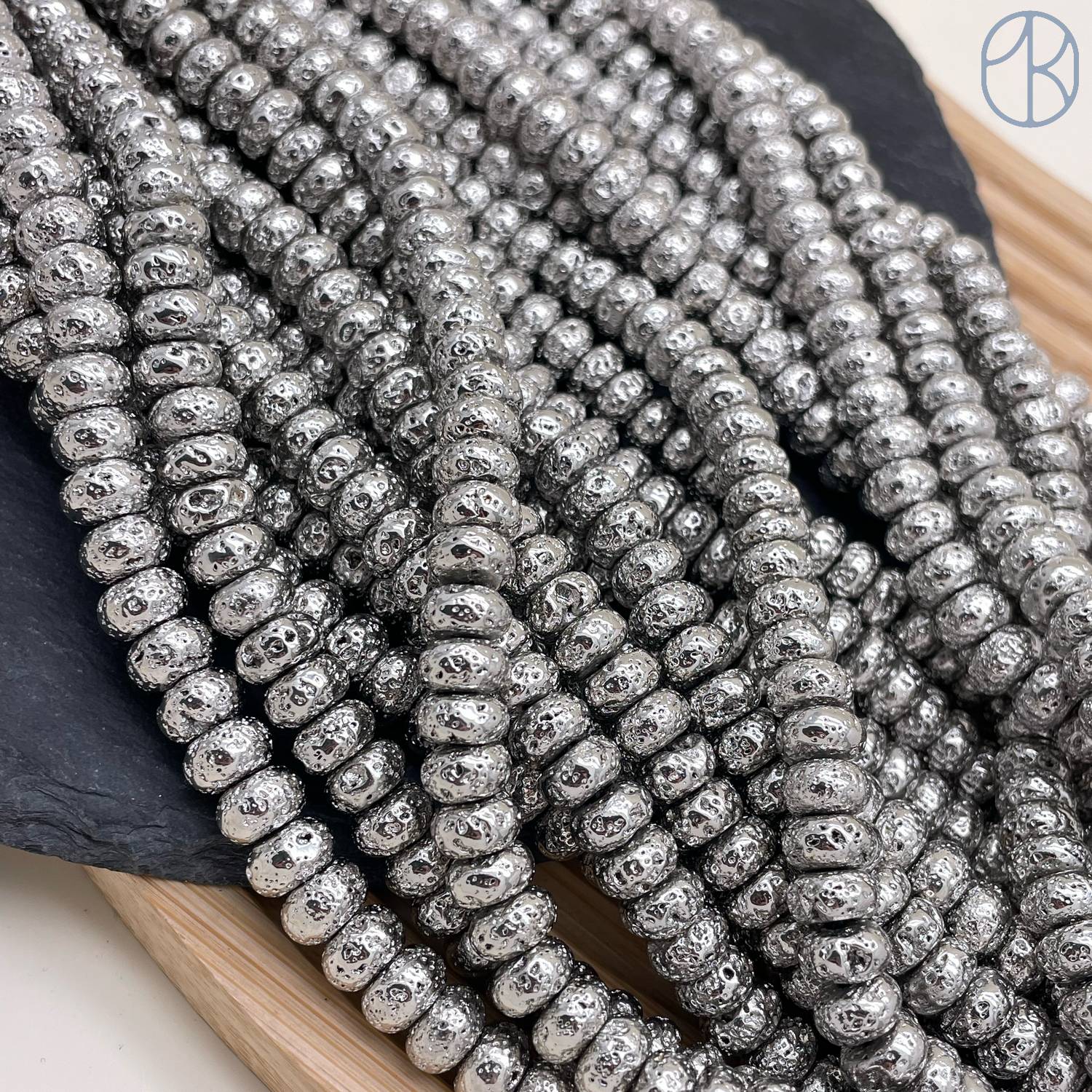 Лава Вулканическая рондель с покрытием темное серебро 8х4 мм