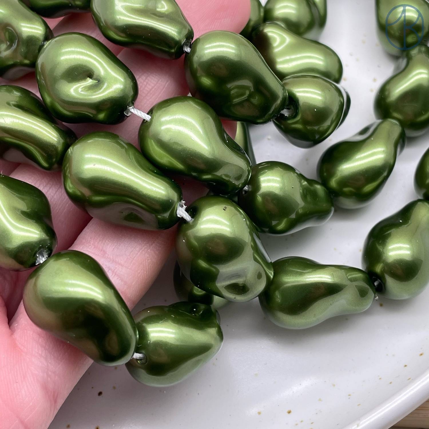 Жемчуг Майорка Барокко цвет темно-зеленый 22х15 мм