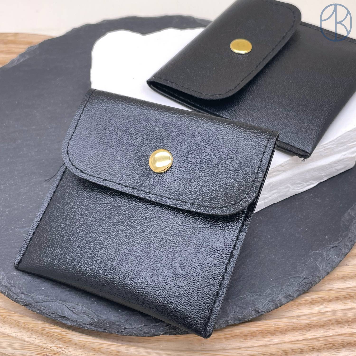 Мешочки с кнопкой экокожа черные 8х8см уп. 2шт