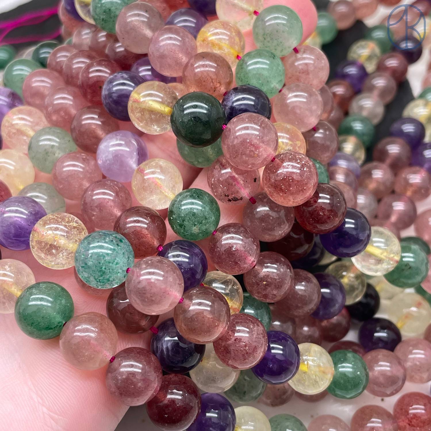 Аметист, клубничный кварц, зеленый клубничный кварц и цитрин