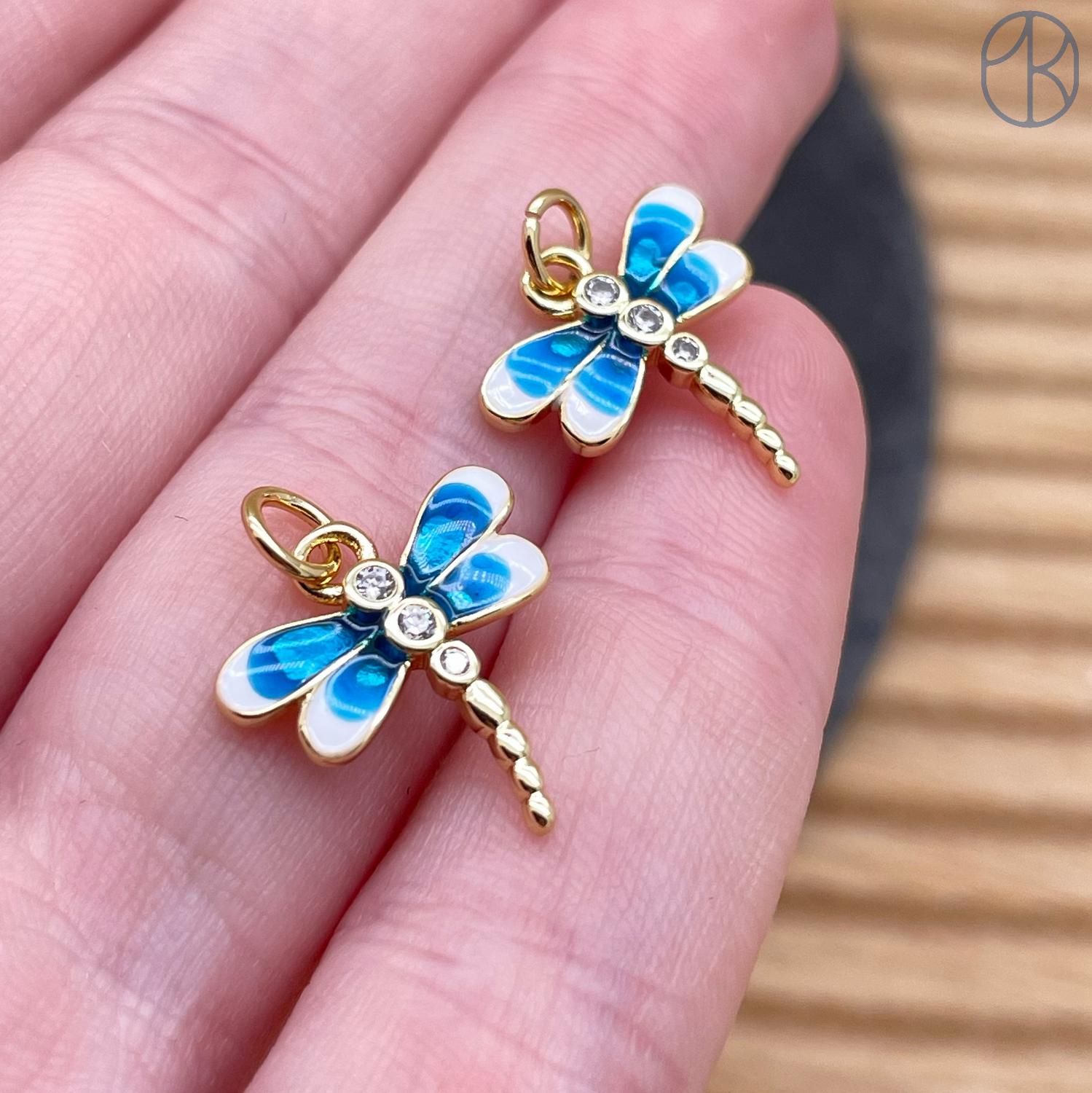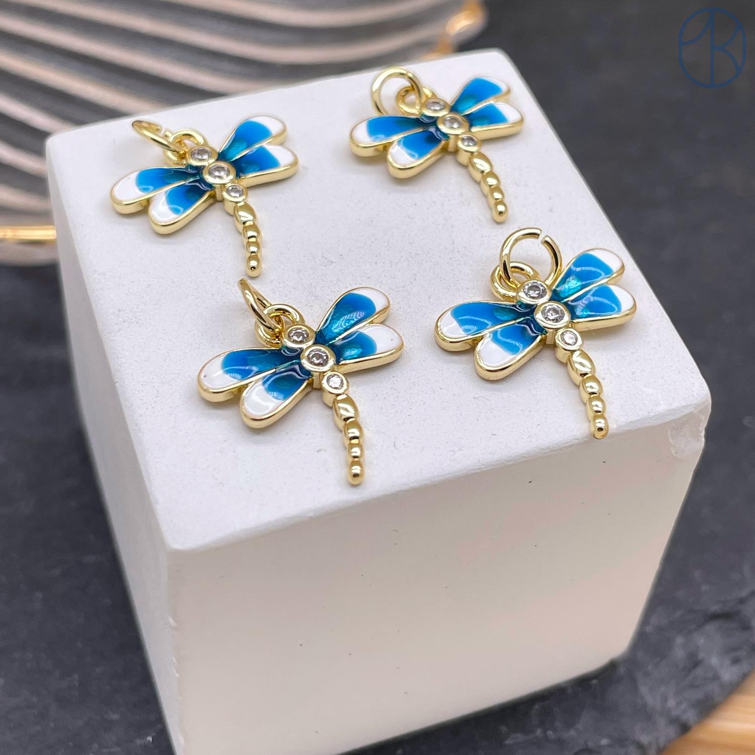 Подвеска стрекоза бело-голубая эмаль, цвет золото 15х15 мм