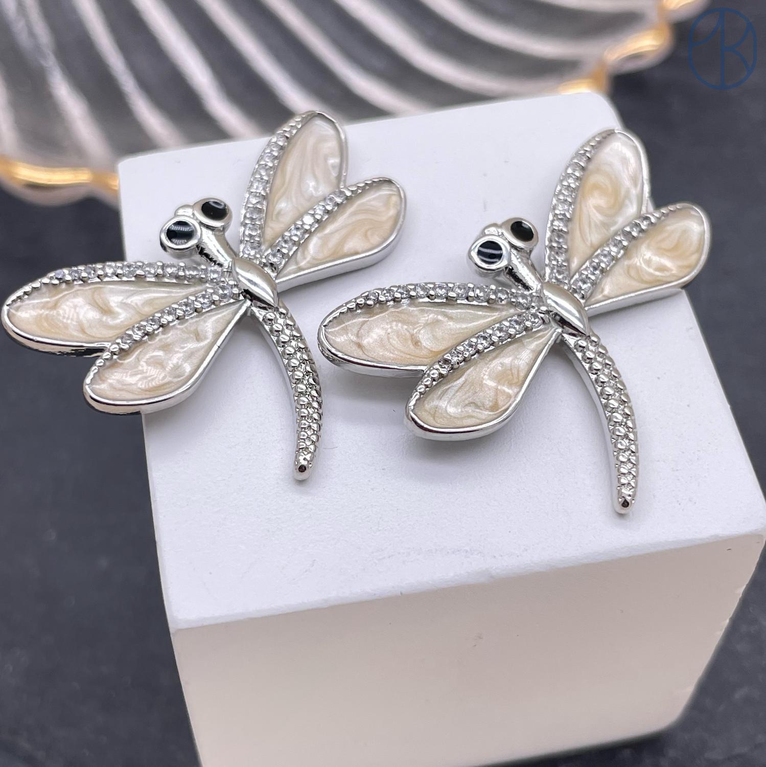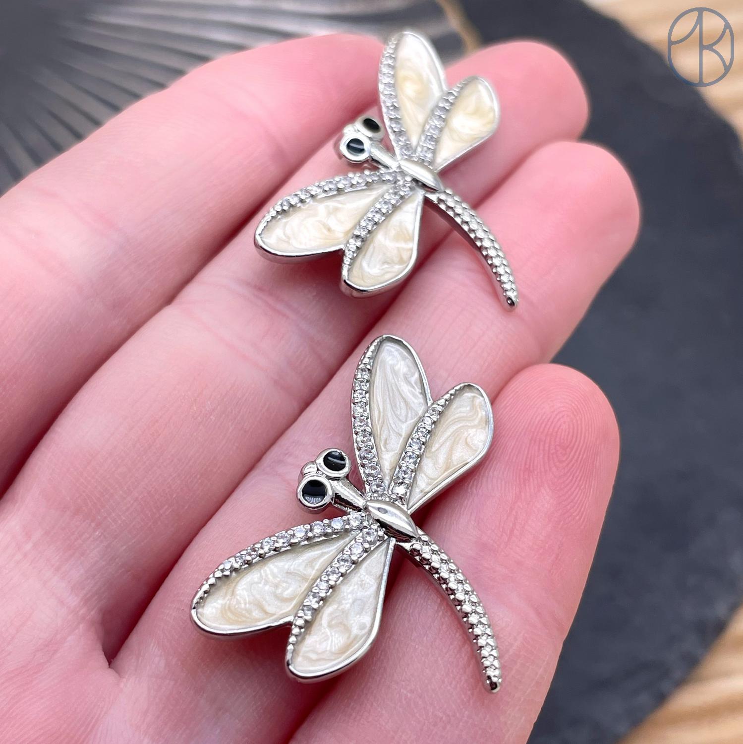 Подвеска стрекоза эмаль и цирконы, цвет серебро 22х30 мм